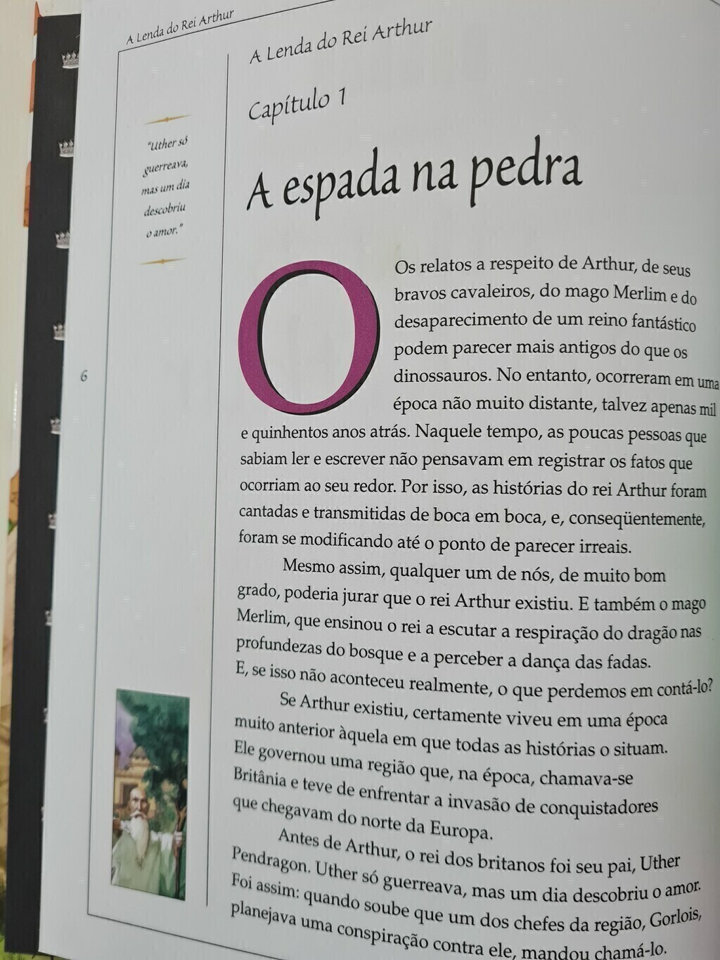 A vida de Arthur, rei dos britanos, inspirou diversos relatos desde o século VII. Neles se encontram os nomes do mago Merlin, de Sir Lancelot, da rainha Guinevere, da espada Excalibur, do Santo Graal e do castelo Camelot, que nos permitem reconstruir aquele mundo mágico e misterioso da Idade Média.