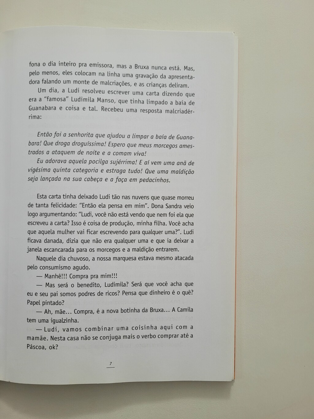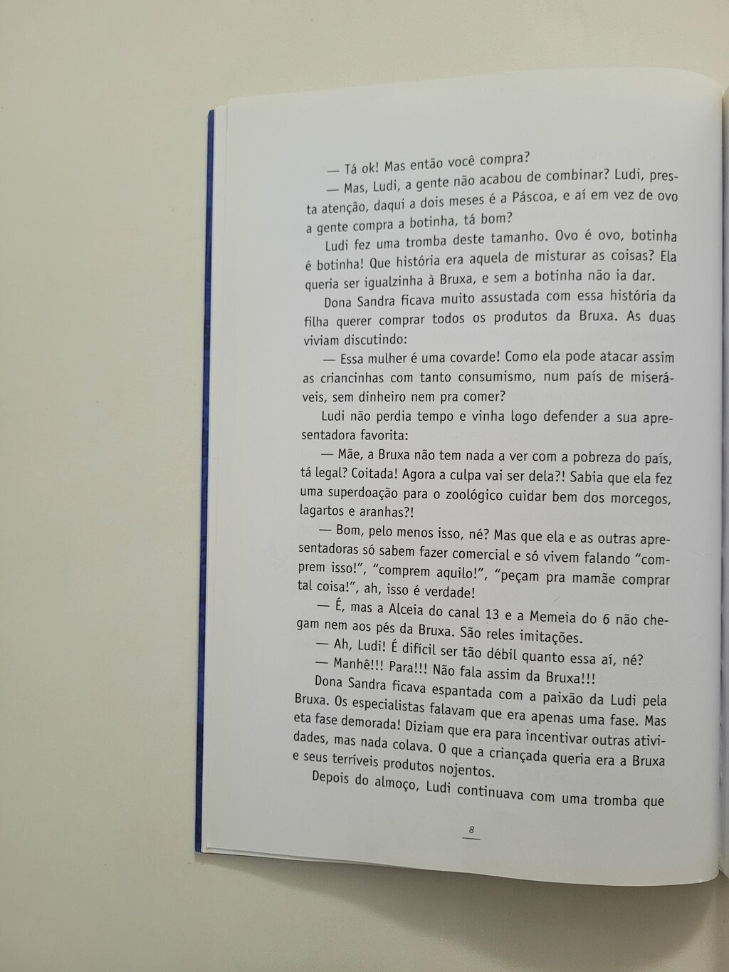 Ludi passa o dia assistindo à TV. Um dia o aparelho “pifa”, mas a menina estava mesmo tão vidrada em televisão que acabou conseguindo ser “sequestrada” por aquela caixinha mágica. Foi um acidente, mas ela bem que aproveitou para fazer das suas, mexendo e remexendo na programação de todos os canais, interferindo em novelas, entrevistas, comerciais e desenhos. O que mais se pode esperar de uma menina de oito anos, crítica acima de tudo? Só mesmo Ludi, uma legítima herdeira da boneca Emília, de Monteiro Lobato, poderia conseguir virar pelo avesso o mundo organizado e perfeito que é mostrado na TV: tão diferente do mundo real onde vivemos!