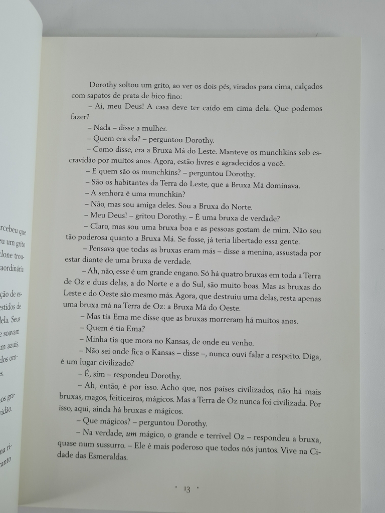 Considerado por seu autor um “conto de fadas modernizado”, O Mágico de Oz tornou-se um clássico da literatura infantil. Dorothy é órfã e mora com seus tios em uma casa modesta da zona rural dos Estados Unidos. Um dia, é carregada por um ciclone que a leva a um reino encantado: a Terra de Oz. Durante sua aventura, a garota encontra três grandes amigos – o Espantalho, o Lenhador de Lata e o Leão Covarde – e faz grandes descobertas. Com esta turma, aprendemos o verdadeiro valor da amizade e que a inteligência, o amor e a coragem são dons a serem desenvolvidos por todos nós!