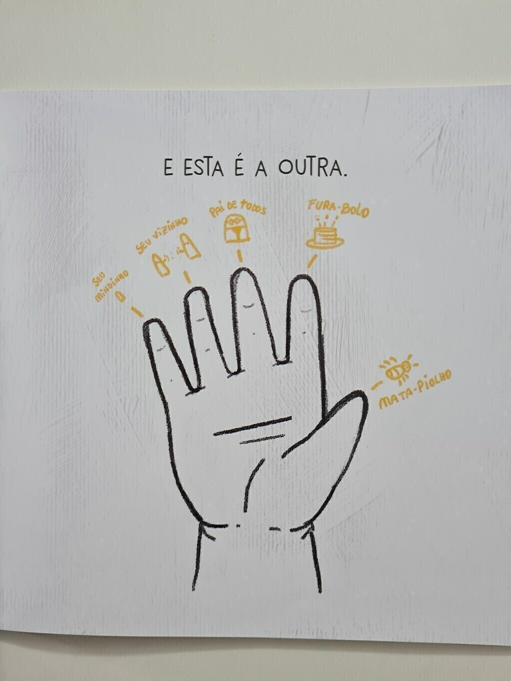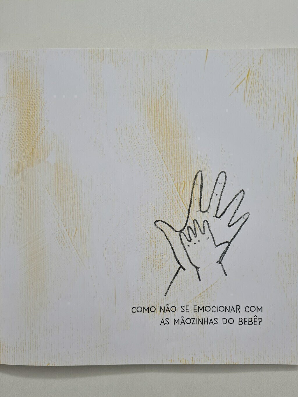 “Mãozinhas” é um livro para brincar. Com uma narrativa curta, o texto e as ilustrações fazem um convite para que os bebês interajam com o livro e com as suas próprias mãos, além da participação do adulto, que também vai amar acompanhar essaleitura divertida. Sabe o que as mãos mais gostam de fazer? Coceguinhas em você! Destacam-se as cores do livro: o branco, o preto e o amarelo, relacionadas ao desenvolvimento da percepção visual do bebê e também o fato do livro trazer uma surpresa par ao leitor adulto: o texto registrado na integra na 4ª capa, facilitando a interação entre o bebê e o livro. SOBRE O LIVRO Como não se emocionar com as mãozinhas de um bebê? Basta fazer esse questionamento para que os pais e educadores já relembrem de momentos felizes com os pequenos, e são essas boas memórias que queremos alcançar, além de inspirar novas experiências. Com imagens simples e clássicas, as ilustrações remetem a esboços desenhados por crianças, feitos a lápis em fundo branco. Apesar da simplicidade, quanto conteúdo! Os desenhos das mãozinhas abertas são um convite para que os pequeninos também interajam com as ilustrações, ao colocar as suas mãos nas imagens e reconhecê-las. O projeto gráfico também é todo pensado para os pequenos: com cores contrastantes e um formato quadrado e menorzinho, o livro é ideal para as mãozinhas desbravadoras. Essa interação, além da diversão, também acarreta no autoconhecimento dos pequenos, estimula o tato e amplia as possibilidades de manuseio do