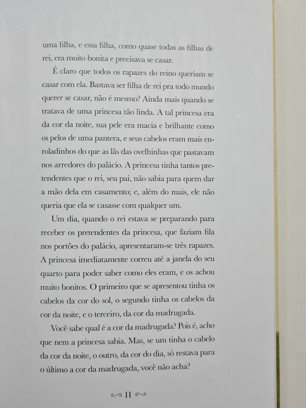Uma princesa que tem a cor da noite, um príncipe muito mal-educado e um menino que não queria ser príncipe de jeito nenhum são personagens de tres histórias encantadas. Histórias inventadas há muitos e muitos anos e que são contadas de bisavo para avó, de avó para mãe e de mãe para filho desde o tempo em que os animais falavam, as bruxas castigavam crianças sapecas e as fadas as salvavam dos perigos e feitiços mais terríveis