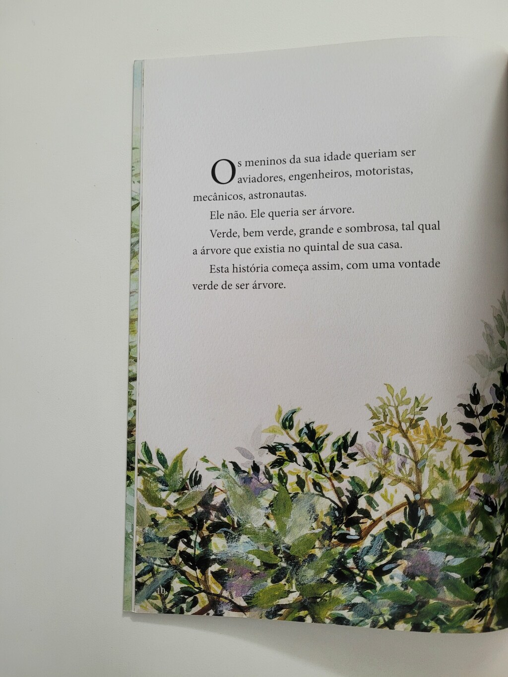 O menino não queria ser engenheiro, nem astronauta, nem detetive. Ele queria mesmo era ser árvore. Verde, bem verde, grande e sombrosa, como a que tinha no quintal da casa dele. Neste livro, Fabiano Tadeu Grazioli e Rosangela Grafetti nos contam uma história cheia de poesia – a da amizade entre o menino e a árvore – e nos levam a refletir a respeito da sabedoria silenciosa da natureza.