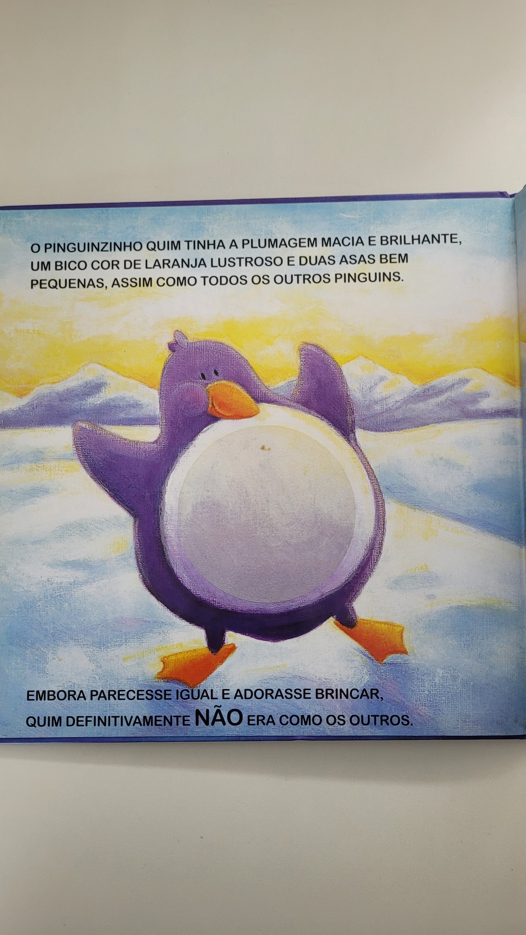 Quim, o pinguinzinho, adora brincar em seu toboga de gelo, mas o que ele quer mesmo é aprender a nadar. Ele tem muito medo de mergulhar, mais um dia ele conseguirá! Um livro belamente ilustrado, com cores brilhantes, páginas aveludadas e um fantástico pop-up no final!
