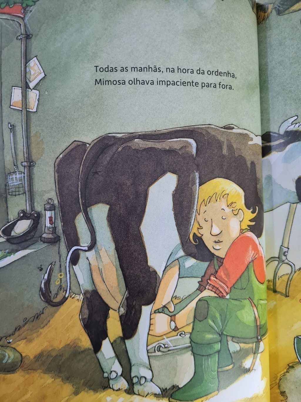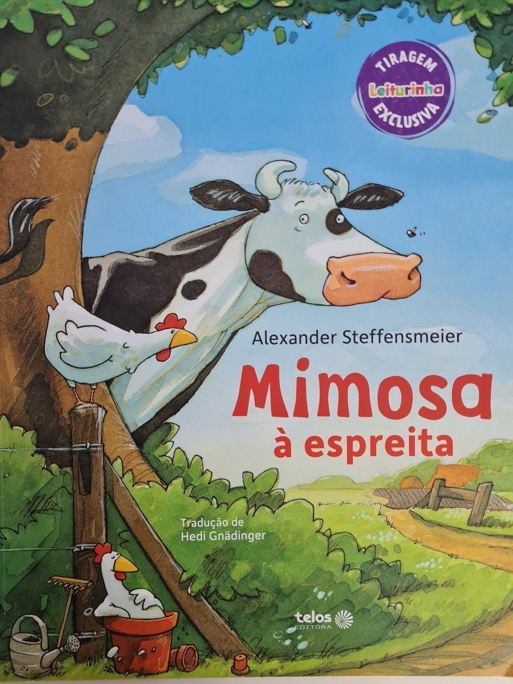 Mimosa é uma vaca muito brincalhona que por vezes, pensa que é um cão de guarda da fazenda em que vive. Não perde uma oportunidade de assustar o carteiro até o dia em que é surpeendida…. “Mimosa à espreita” é o primeiro volume de uma Série publicada em mais de 20 países e uma das personagens mais populares de livros infantis na Alemanha.
