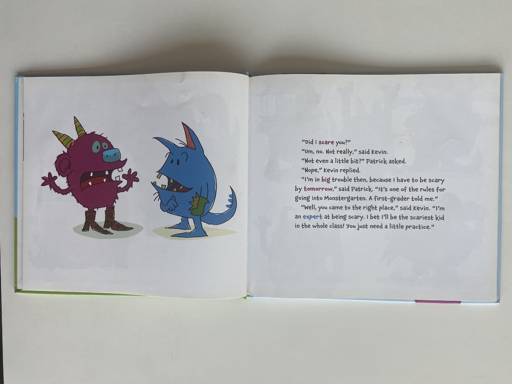 Patrick is worried about his first day of monstergarten. Everyone knows you have to be SCARY in monstergarten. Patrick’s friend, Kevin, offers to show Patrick how to be scary they roar, they sneak up on people, they bare their teeth. But Patrick still isn’t ready. His parents tell him to just be himself. But what if he’s not scary ENOUGH?
