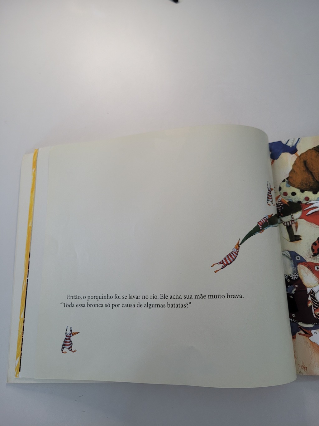 O protagonista desta história está em apuros. O porquinho Alex – que não perde a chance de comer fora de hora – esconde-se no jardim de sua casa para devorar um monte de batatas. Pego em flagrante, toma uma bronca daquelas da mãe. Desolado, vai ao rio para se lavar, tentando resistir a tentações como maçãs gordinhas e framboesas brilhantes que encontra pelo caminho. Até que, de repente, um monstro enorme aparece para devorá-lo. Monstro, não me coma! aborda um assunto latente dentro da educação infantil: os limites entre a boa nutrição e os excessos alimentares – aos quais as crianças estão expostas -, que podem causar problemas como a obesidade. As ilustrações fantasiosas de Carll Cneut enriquecem o texto. Os detalhes revelam informações omitidas no texto de Carl Norac, e deixam pistas sobre o final desta bem-humorada aventura. Uma história de monstro diferente, que certamente não provocará pesadelo nas crianças. É impossível terminar o livro sem arriscar um esboço de sorriso.