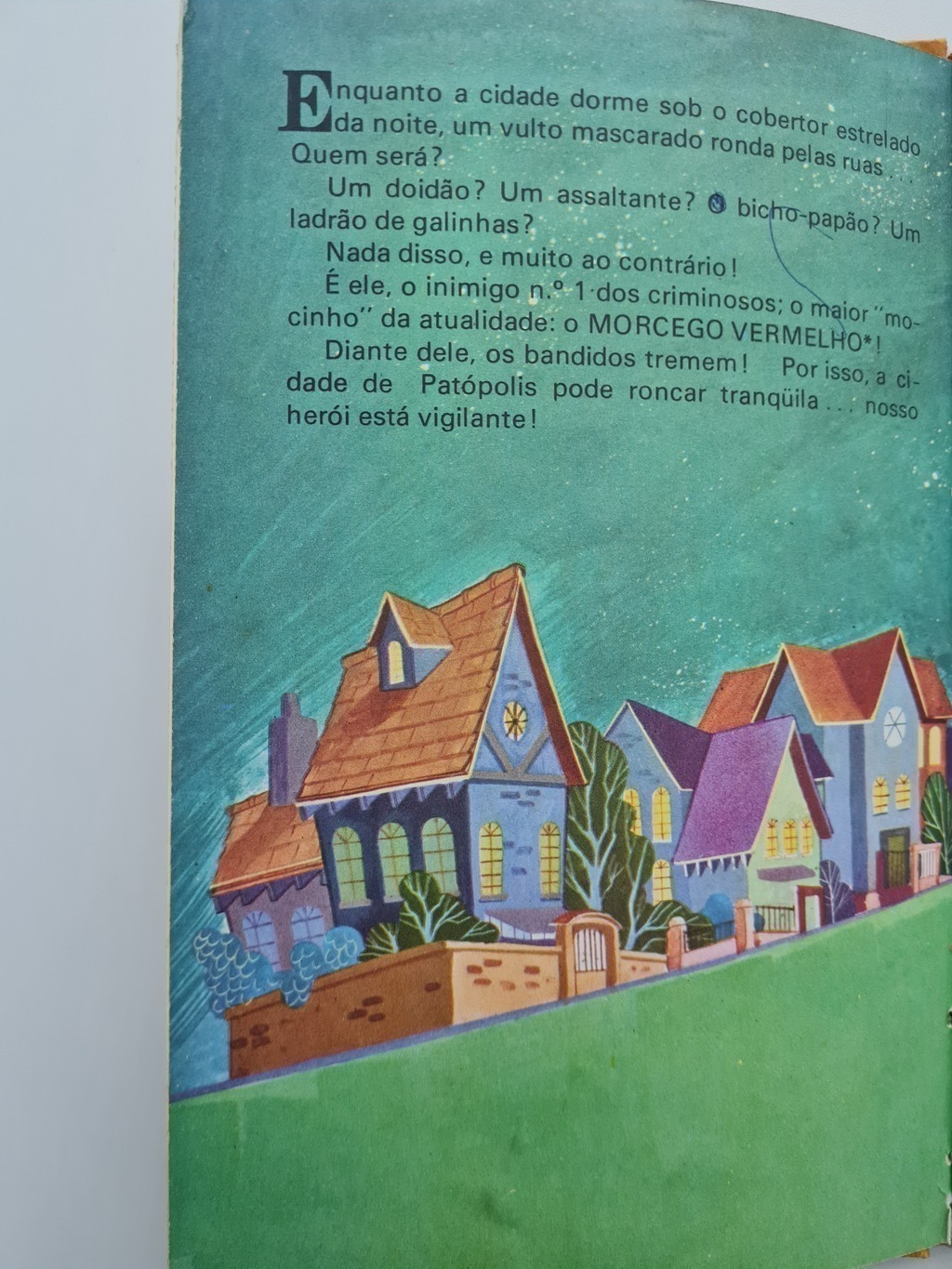 Atentendo a um pedido de socorro, o valente Morcego Vermelho parte em auxílio da vítima. E para sua surpresa, o assaltante era nada mais nada menos que o terrível Mancha Negra! Após sensacional perseguição, o Mancha consegue graças a um… CHAPÉU VOADOR!!!