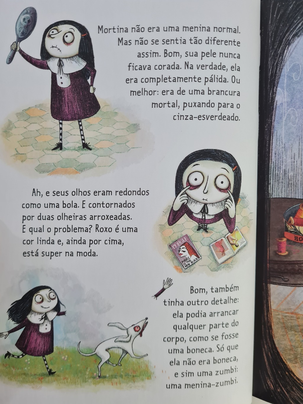 Mortina é uma menina diferente de todas as outras: ela é uma menina-zumbi. Passa os dias no Palacete Decrépito com sua tia Fafá Lecida e seu inseparável amigo, o galgo albino Tristão.