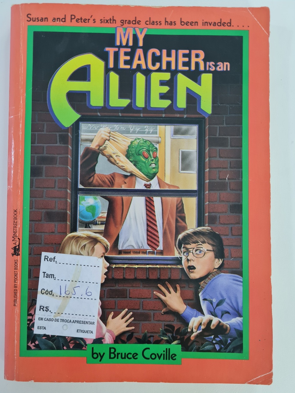 Susan Simmons can tell that her new substitue teacher is really weird. But she doesn’t know weird until she catches him pelling off his face and she realizes that “Mr. Smith” is really na alien! At firts no one will belive her except Peter Thompson, the class brain. When Peter and Susan discover Mr. Smith’s horribe plans for their classmates, they know they have to act fast. Only they can get rid os their extraterrestrial visitor and save the rest of the sixth grade class from a fate worse than math test!