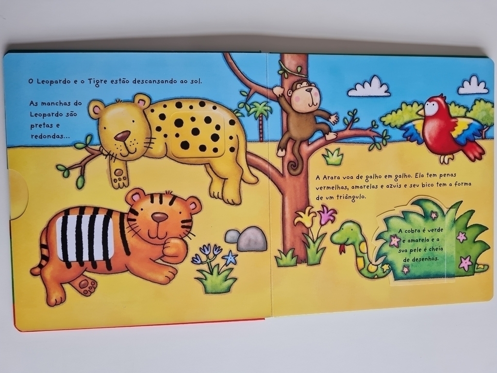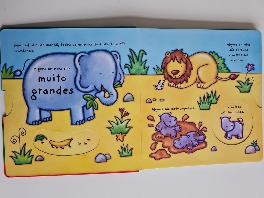 Outro dia quente na floresta! Venha brincar com elefante, o leão e todos os seus amigos e conhecer formas, cores, números e o contrário das coisas. Puxe, empurre, gire, abra as janelinhas e brinque com as lindas páginas coloridas deste livro. Uma grande diversão para mãozinhas bem pequenas.