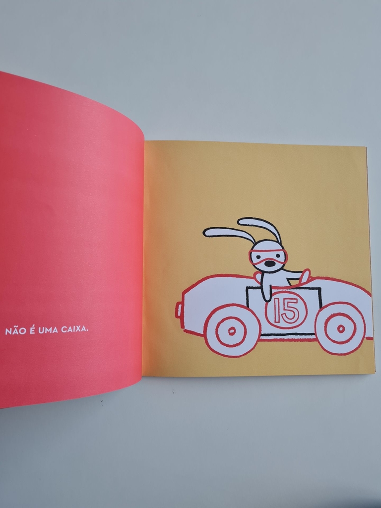 Quem nunca brincou dentro de uma caixa de papelão? É exatamente isto que faz o protagonista de Não é uma caixa: solta a criatividade e embarca em infinitas aventuras a bordo deste objeto banal assim pensam as pessoas pouco inventivas. Num jogo divertido, ele é indagado a cada página sobre o que está fazendo com certa caixa de papelão. E, claro,sempre responde: “não é uma caixa”. É quando a ilustração revela o que na verdade a caixa representa para ele. Aqui, a brincadeira começa na capa, com o sinal de este lado para cima e outros símbolos comuns em caixas de papelão, além de orelhas que envolvem o próprio livro. Paulo Tatit, músico e autor de canções do selo Palavra Cantada, comenta no texto de quarta capa o contraste entre o mundo infantil e o mundo sério da maturidade. Porque à medida que crescemos, uma caixa vai se tornando apenas uma caixa. Mas nunca perdemos a capacidade de voltar a sentir, ainda que por alguns minutinhos, aquele delicioso faz de conta. Para crianças e adultos pensarem e viverem além da caixa.