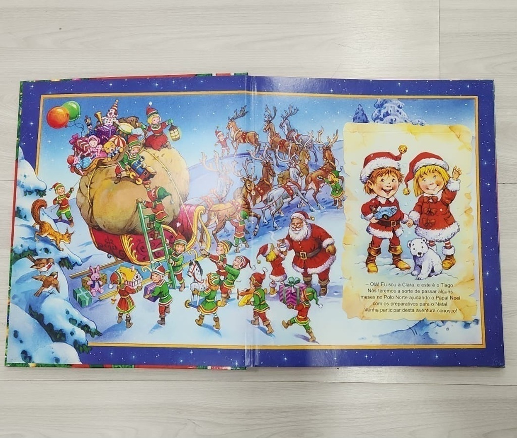 Acompanhe Clara e Tiago em uma visita ao Papai Noel, no Polo Norte! Eles vão se divertir muito e até ajudar a embrulhar os presentes para colocá-los no trenó. Como o Papai Noel entrega os presentes nas casas que não tem chaminés? Como um filhote de rena aprende a puxar o trenó? Como o Papai Noel faz o seu trajeto ao redor do mundo todo? Encontre as respostas destas e de outras perguntas dentro deste livro que tem abas, pop-up e muito mais.