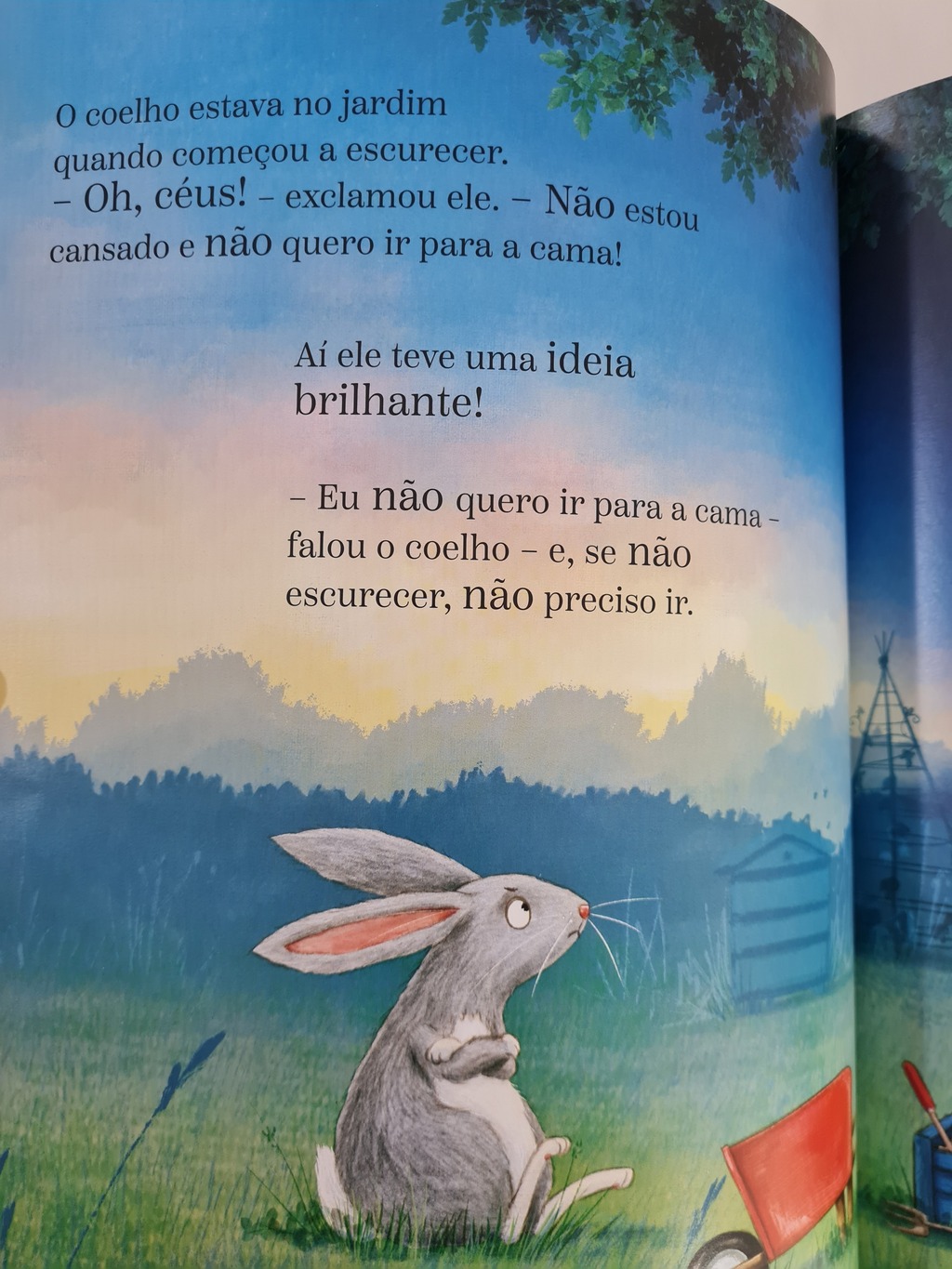 Era uma vez um coelho que não queria ir dormir. Então, ele teve uma ideia brilhante para adiar a hora de ir para a cama. Prendeu o escuro em uma lata de biscoitos! Com o sol iluminando tudo, ele continuaria acordado, certo? Mas será que o escuro só serve para a gente dormir? Nessa aventura, o coelho vai acabar descobrindo que muitos animais – e até plantas – precisam que anoiteça! Vai perceber também que dormir não é assim tão ruim. Certamente, os pequenos leitores vão se identificar com esta nova obra da premiada Nicola O’Byrne, de sucessos como Abra com cuidado, O que tem atrás da porta? e A última história antes de dormir.