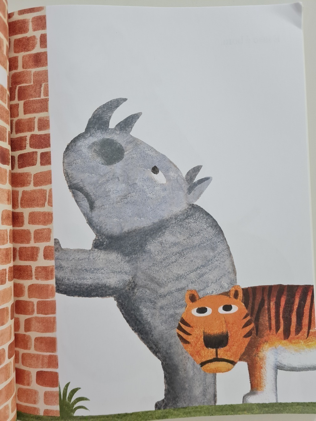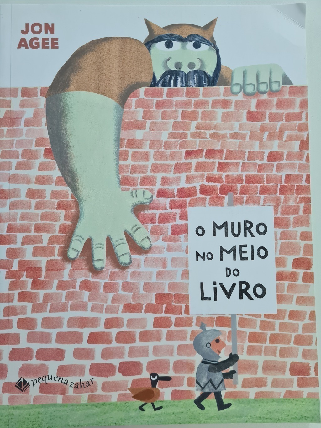 Tem um muro no meio deste livro. E um pequeno cavaleiro esta de que o muro protege o seu lado bom do livro dos muitos perigos do outro lado, um tigre faminto, um rinoceronte gigante e, o pior de todos, um ogro terrivel que vai devora lo. Mas nem tudo e o que parece…