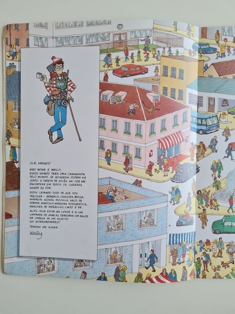 Wally é um rosto perdido na multidão, e a tarefa do leitor é encontrá-lo em todos os lugares que ele visita. O simpático e desajeitado Wally vai perdendo suas coisas pelo caminho; óculos, mochila, xícara, bengala… Procure Wally na praia, na estação, no camping, no estádio. Em algum lugar, no meio da confusão, ele estará sempre seguindo em frente, em busca de novas aventuras.