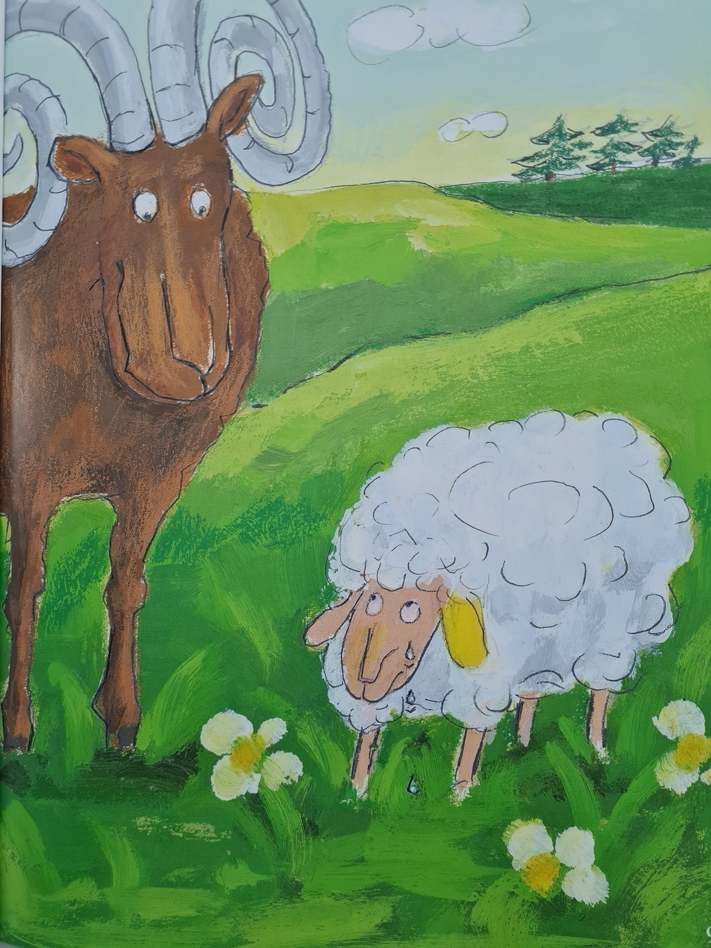 Era uma vez uma pequena ovelha, igual a todas as outras. Só uma coisinha nela era diferente: uma de suas orelhas era amarelo-limão…