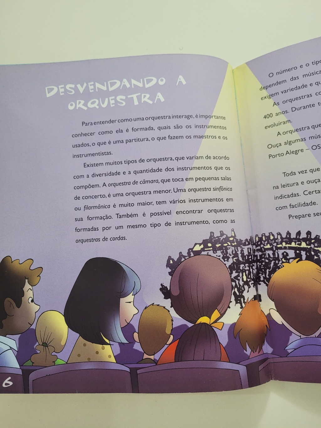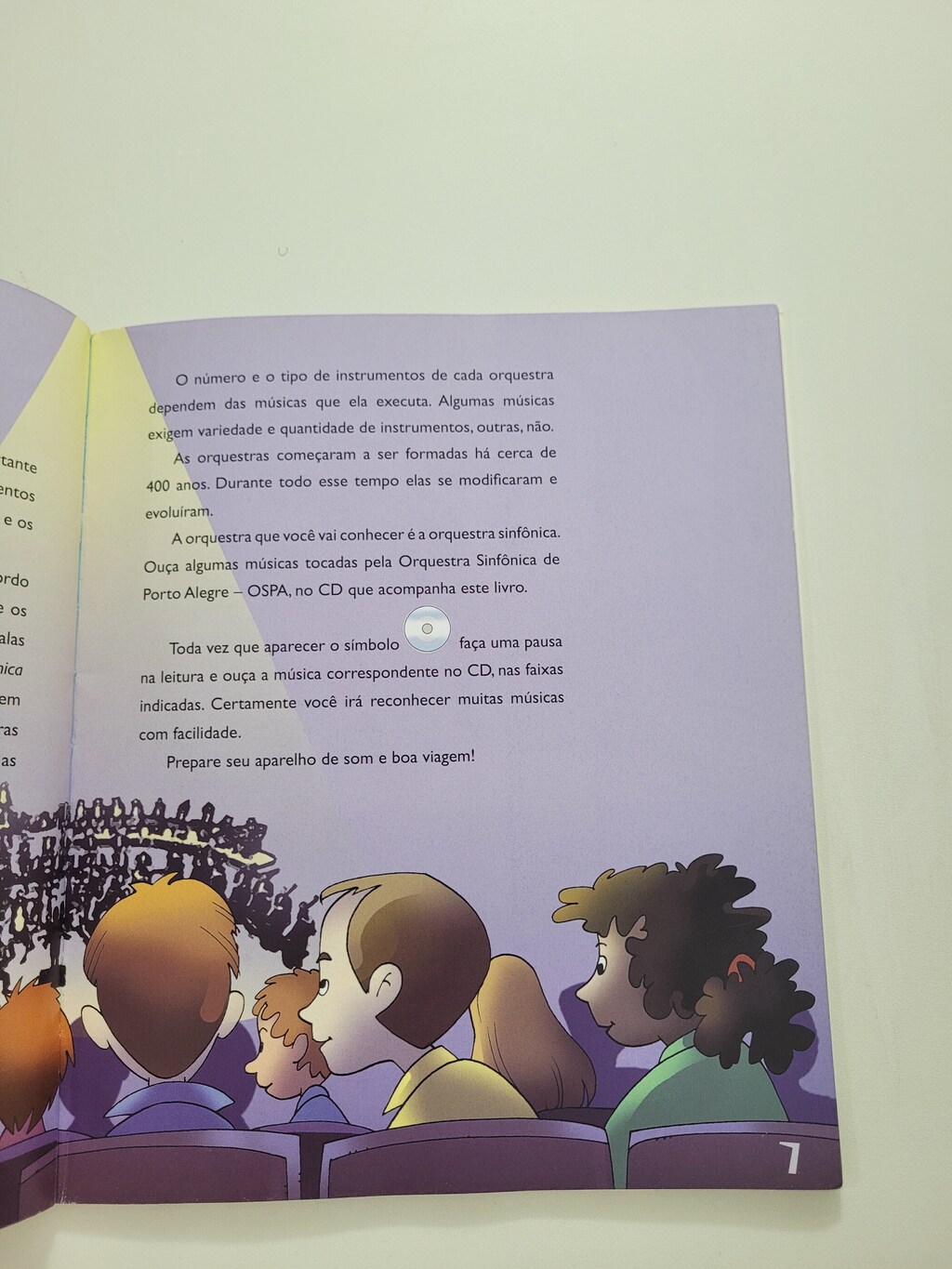 Eis aqui um verdadeiro guia pelo mundo da música de orquestra. Apresenta os instrumentos das famílias das cordas, madeiras, metais e percussão, o papel do maestro e dos instrumentistas. De maneira simples e divertida, as crianças terão ótima oportunidade de conhecer o som dos instrumentos e descobrir que as orquestras podem tocar diferentes tipos de música, da erudita à folclórica, à popular e outras mais. O CD que acompanha o livro auxilia a viagem pelas famílias dos instrumentos. No final, a Orquestra Sinfônica de Porto Alegre (OSPA) nos presenteia com uma peça de Beethoven.