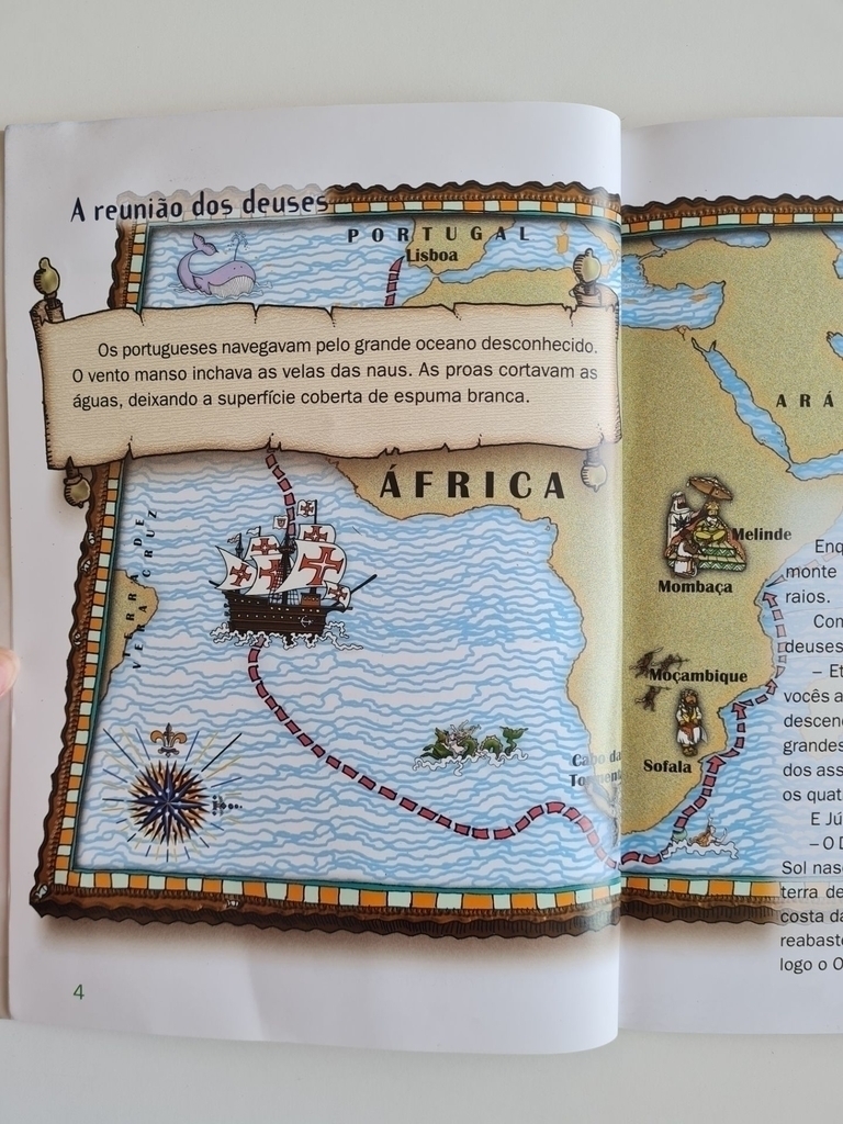 Dom Manuel, rei de Portugal, ordenou ao almirante Vasco da Gama que reunisse seus homens e percorresse os mares de norte a sul, em busca de uma terra chamada Índia. Essa viagem, do Ocidente ao Oriente, foi repleta de aventuras. Os portugueses tiveram de enfrentar muitos perigos até cumprir sua missão.