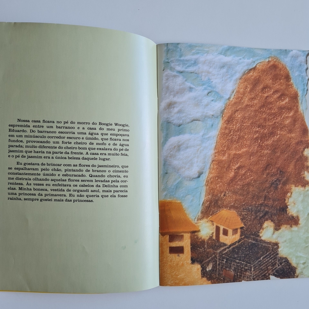 Liliana mora com os pais em uma casa pequena, cheia de goteiras, nos fundos da casa dos primos. Como a casa fica próxima ao morro Boogie Woogie, todos vivem com medo de desabamento e ficam muito assustados em dia de temporal.Liliana gosta muito de brincar com sua boneca chamada Delinha e com um pé de jasmim. Com a força da imaginação, ela consegue amenizar a dura realidade do mundo à sua volta.De forte cunho social, esta envolvente e delicada narrativa de Georgina Martins certamente vai mexer com a emoção do leitor. Narrativas e poemas que abordam o cotidiano da criança e a convivência com os outros.