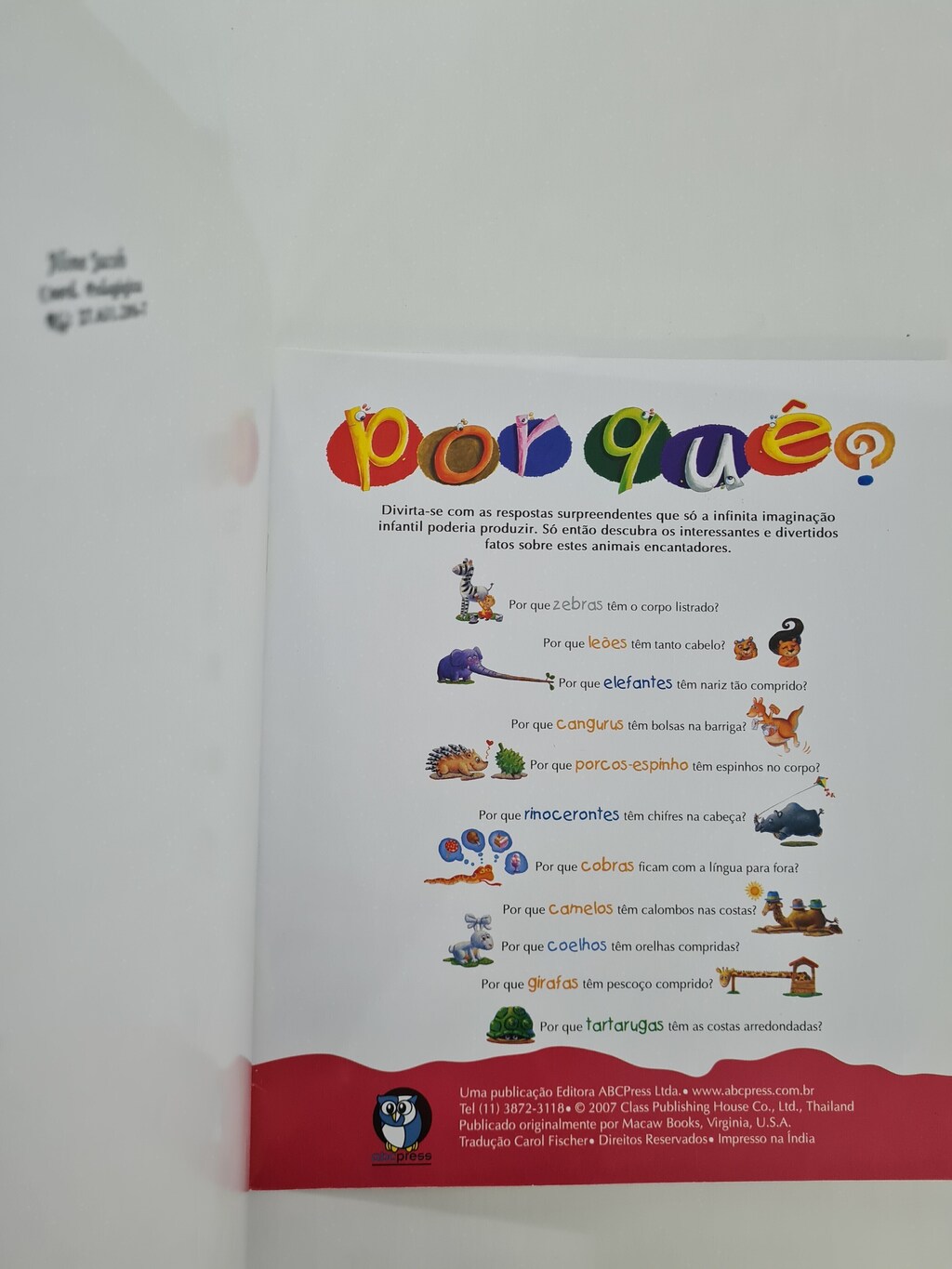 Por que cangurus têm bolsas na barriga? Por que o nariz do elefante é tão comprido? Divirta-se com as repostas surpreendentes que só a infinita imaginação infantil poderia produzir.
