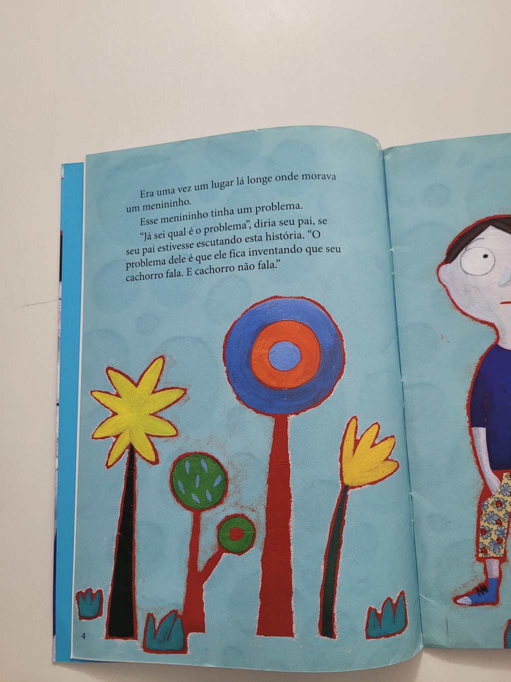 O menino desta história tem um cachorro que sabia falar e que inventava um monte de mentiras. É verdade que o menino até se divertia com as histórias contadas por seu amigo, mas muitas vezes não sabia o que fazer quando o cãozinho se atrapalhava e acabava se perdendo no meio de tanta imaginação.