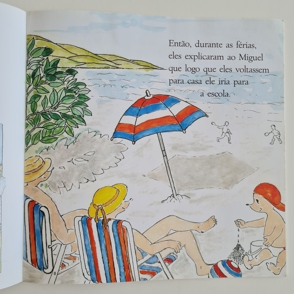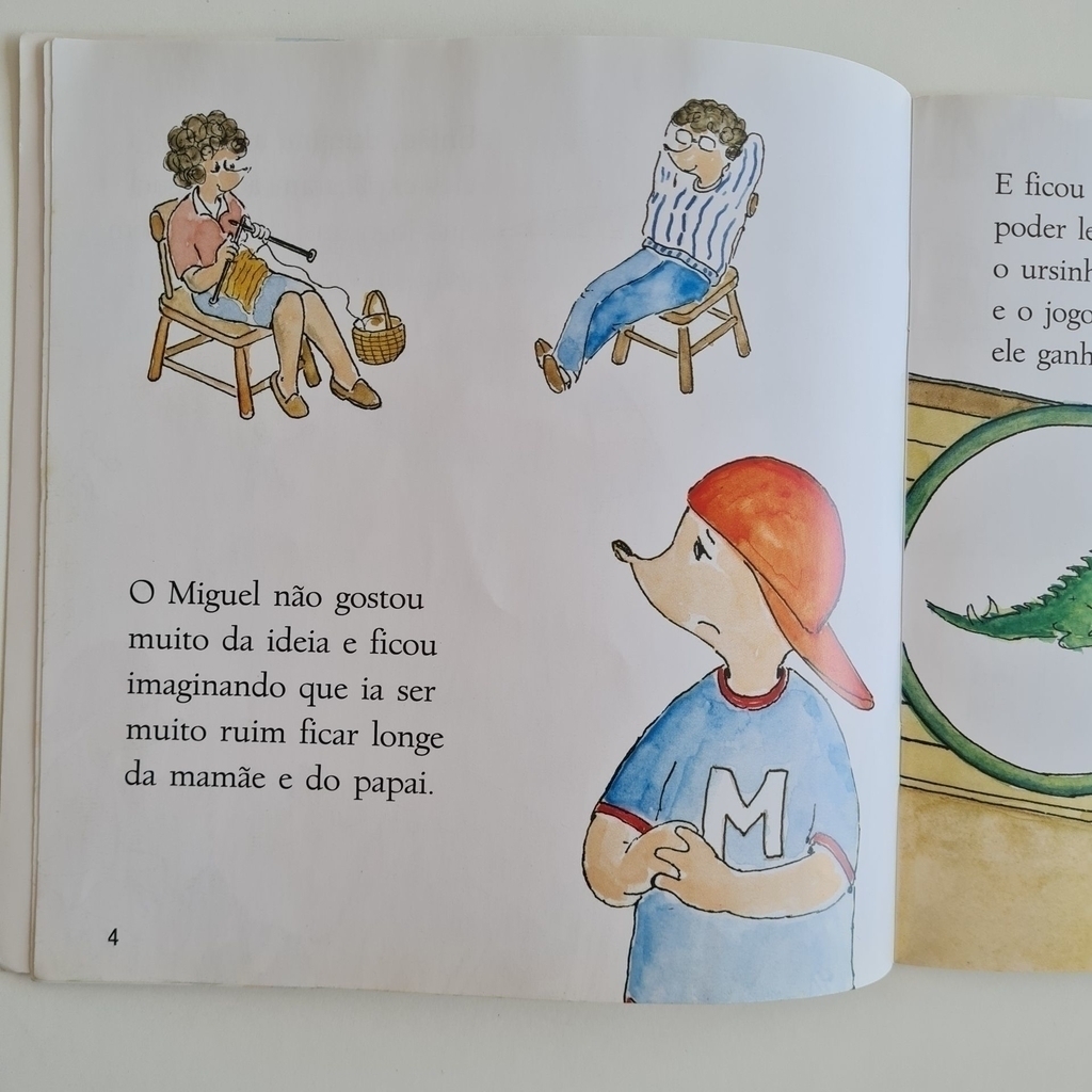 Miguel está com três a nos, e hoje é seu primeiro dia na escola, longe do papai e da mamãe. Com maestria e linguagem cativante, Ruth Rocha aborda as primeiras emoções e os sentimentos da criança que descobre sua segunda casa: a escola. Aos poucos, Miguel se acostuma ao ambiente, brinca com os novos amigos e se entrega a mais essa experiência. No fim do dia, claro, ele não vê a hora de o papai chegar para levá-lo de volta… Para alegrar seu netinho, Ruth Rocha escreveu as histórias desta coleção. Depois, o vovô Eduardo Rocha entrou na brincadeira e desenhou os netinhos Miguel e Pedro como se fossem tatus…