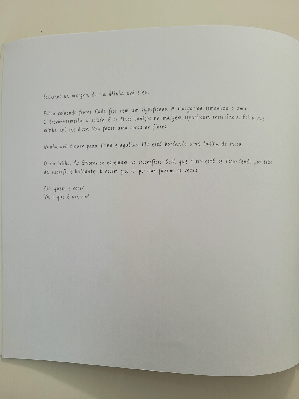 Vó, o que é um rio? Um rio é um fio, diz a minha avó. Ele cria padrões bonitos na superfície da Terra, faz renascer campos e consciencias, cria histórias e faz com que diferentes lugares, épocas e pessoas se encontrem.