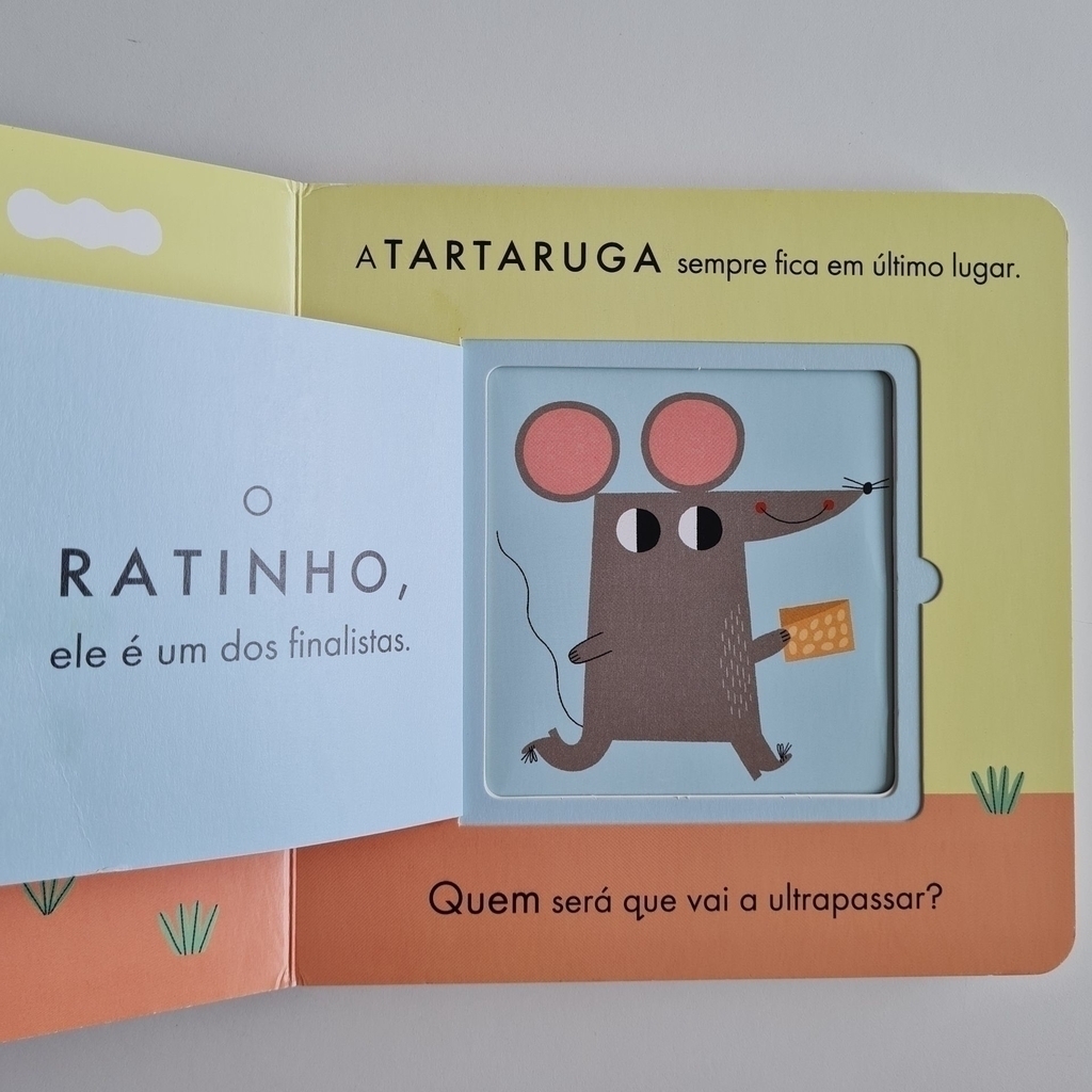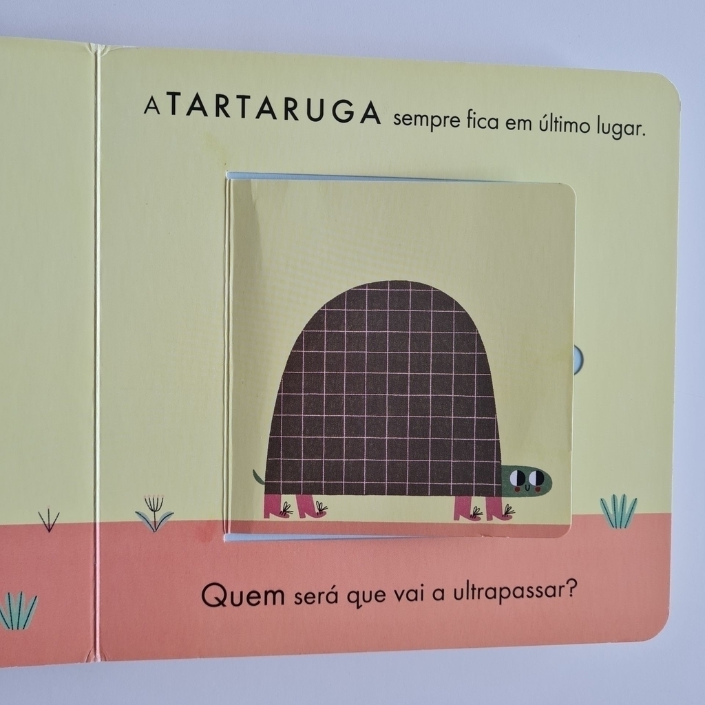 “A tartaruga sempre fica em último lugar. Quem será que vai a ultrapassar?” Quem é o animal mais rápido? Abra as janelinhas e descubra a resposta neste adorável livro de animais!