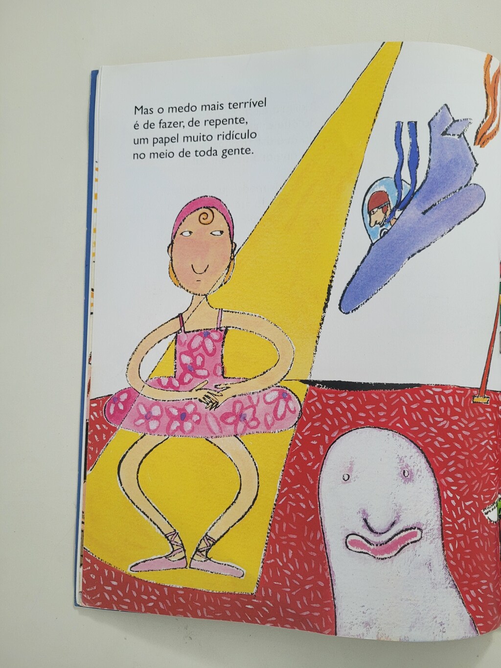 Quem não tem medo de fazer um papel muito ridículo no meio de todo mundo? Falar uma bobagem no meio da aula quando a classe inteira está em silêncio; vestir uma roupa toda certinha e ir para uma festa em que a turma está bem desarrumada; soltar pum no meio de um casamento… É muito desagradável mesmo. Mas quem nunca passou por isso que comece a zoar os outros.Da série Quem Tem Medo?, da qual também fazem parte Quem tem medo de monstro? e Quem tem medo de dizer não?, entre outros, Quem tem medo do ridículo? é um desses livros que a gente lê com muito prazer e dando risada, mas no fundo pensando ufa, ainda bem que não sou só eu.
