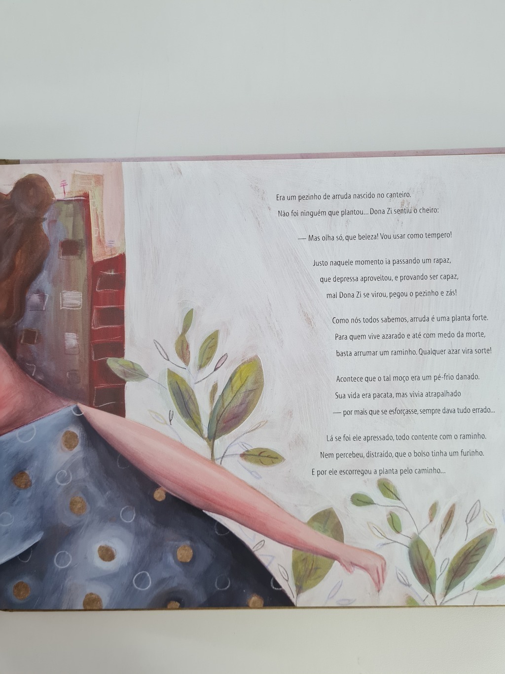 Há quem use a arruda como tempero, enquanto outros usam para curar cobreiro. Alguns usam em benzeduras, e outros para acabar com a insônia. Também tem gente que simplesmente gosta do cheiro e até dá de presente. E, quando um raminho vai passando de mão em mão, encontrando os mais diferentes personagens numa história divertida e ritmada, a gente consegue descobrir os vários usos e significados dessa plantinha tão especial para a cultura brasileira.