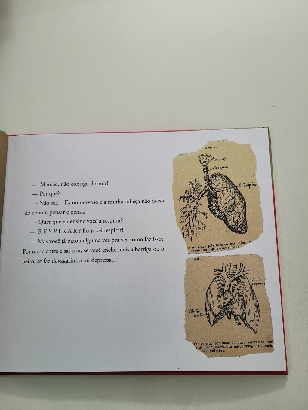 Mamãe, não consigo dormir! Por quê? Não sei Estou nervoso e a minha cabeça não deixa de pensar, pensar e pensar Quer que eu ensine você a respirar? R E S P I R A R ? Eu já sei respirar! Mas você já parou alguma vez pra ver como faz isso? Poronde entra e sai o ar, se você enche mais a barriga ou o peito, se faz devagarinho ou depressa