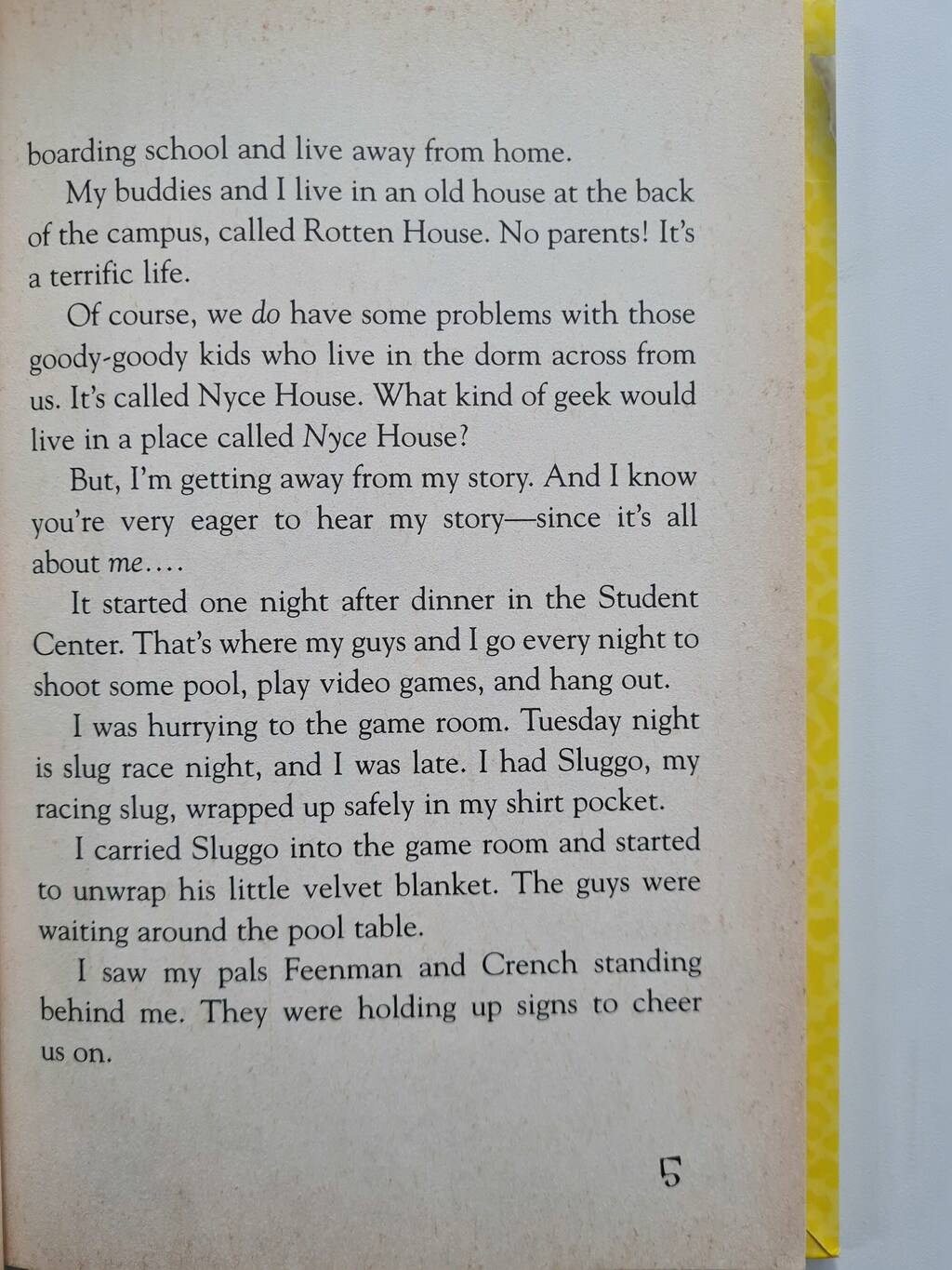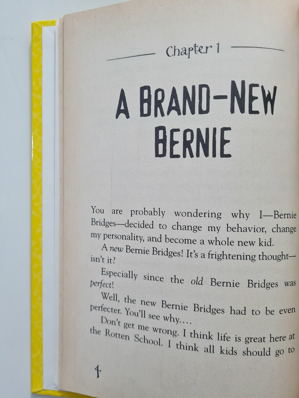 She’s the coolest hottest girl in the school and Bernie thinks she should go to the dance with him. April-May won’t even be seen with Bernie because he’s such a troublemaker. So Bernie makes her a promise-a really scary promise. He says he’ll stay out of trouble for a whole week if she promises to go to the dance with him. Bernie is shaking, quivering, quaking. Can he turn into a goody-goody- especially when it’s time for the famous( AGAINST THE RULES!) super slimy slug race?