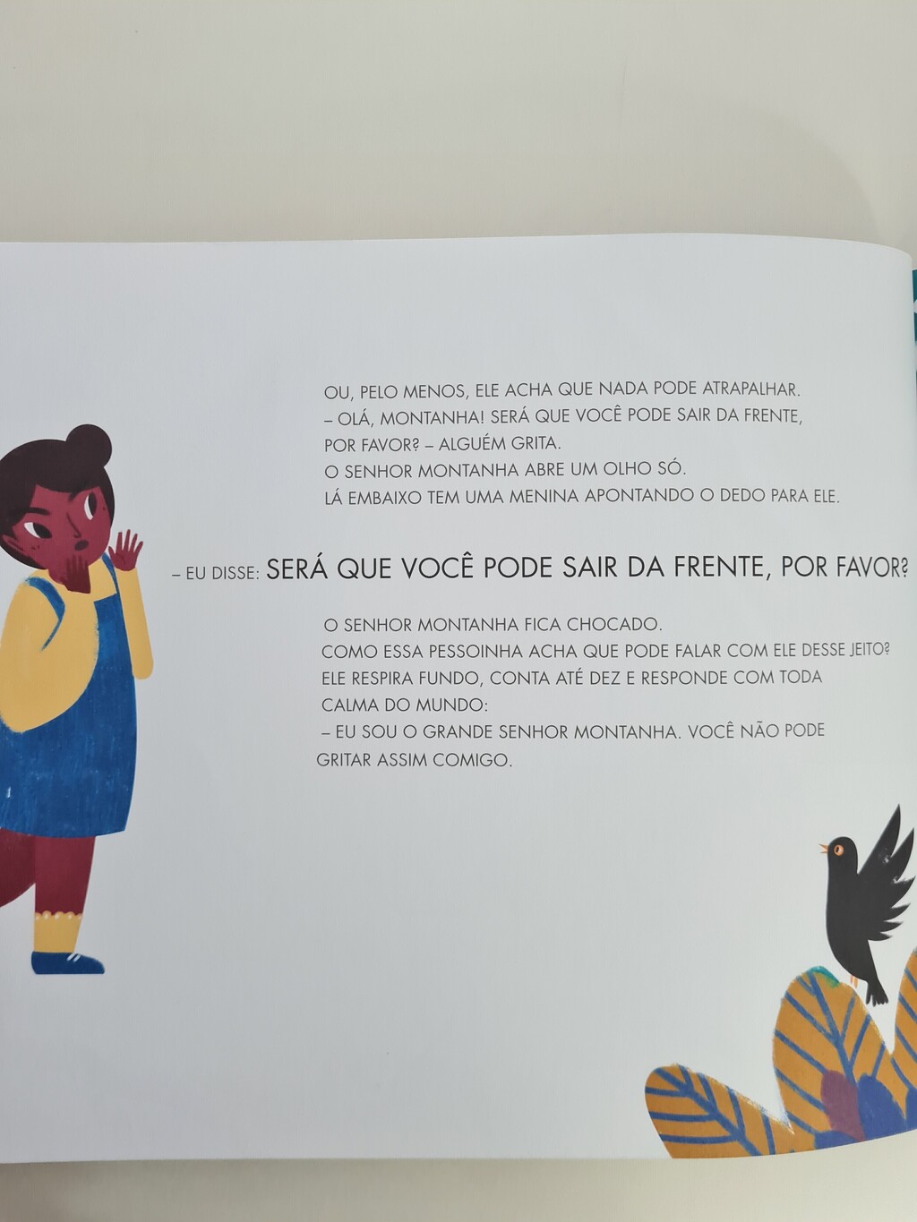 Como uma criança pode pedir a uma montanha, de milhões de anos, que se mova? Esse é o pedido da pequena Lili, que deseja muito ver o que existe do outro lado, atrás do Senhor Montanha. É claro que ele não pode simplesmente dar um passinho para o lado, né? Mas, da sua forma, vai encontrar um jeito especial de apresentar o mundo a Lili. Um livro divertido e lúdico sobre as diferentes perspectivas e olhares sobre a vida. E um lembrete de que sempre podemos trocar com os outros e aprender algo, mesmo tendo milhões de anos!