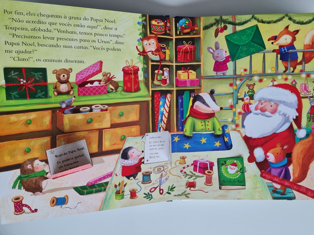 É véspera de Natal e os Ursos da Montanha dos Sinos estão ilhados por causa de uma nevasca! Será que os amigos do Papai Noel vão conseguir ajudar a salvar o Natal dos Ursos? Junte-se aos animais da Floresta do Pinheiro nesta divertida aventura, cheia de cartinhas secretas e janelinhas para espiar, embalada pela magia do Natal.