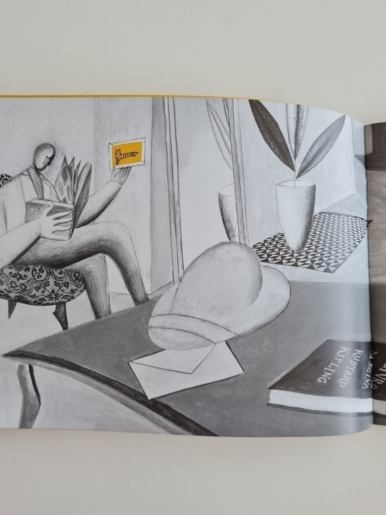 Esta é uma narrativa visual, quase sem palavras para guiar o leitor. Na capa, o nome do livro e o do autor . Logo na primeira página, sobre uma mesa,vemos um livro cujo título é O livro da selva, de Rudyard Kipling. Assim o leitor, atentando a essas poucas pistas verbais, terá de descobrir as histórias guardadas pelas imagens deste livro de capa cor de laranja, em que um tigre, de costas para nós, se movimenta. Como começar? Ao abri-lo, nas folhas de guarda encontramos desenhos, como num álbum de fotografias, de alguns animais exóticos a maioria sem inscrição , no entanto, um dos espaços encontra-se vazio. Quem o ocupará ou deixou de ocupá-lo? Aqui está o primeiro enigma e a primeira surpresa da história. São dois os protagonistas: um caçador e um tigre. Onde um está, o outro não está. Eles se movimentam, conforme viramos as páginas, por dois lugares: os espaços da casa, em preto e branco, e os da fotografia, com fundo laranja, do porta-retrato. Mais um livro instigante de Roger Mello. Resenha Especializada – A Taba