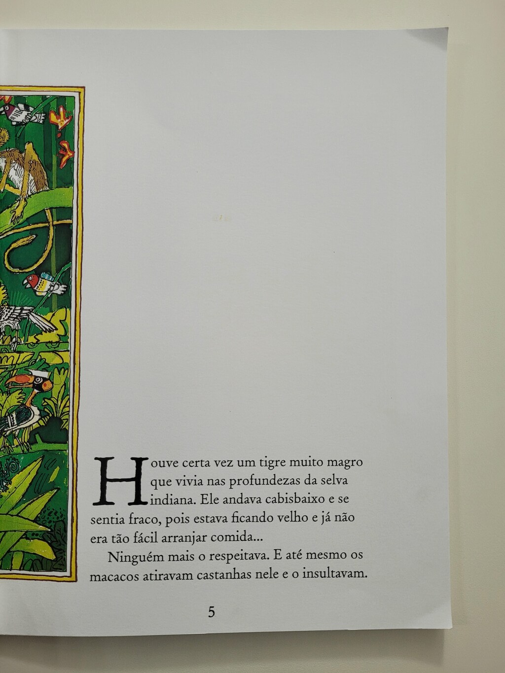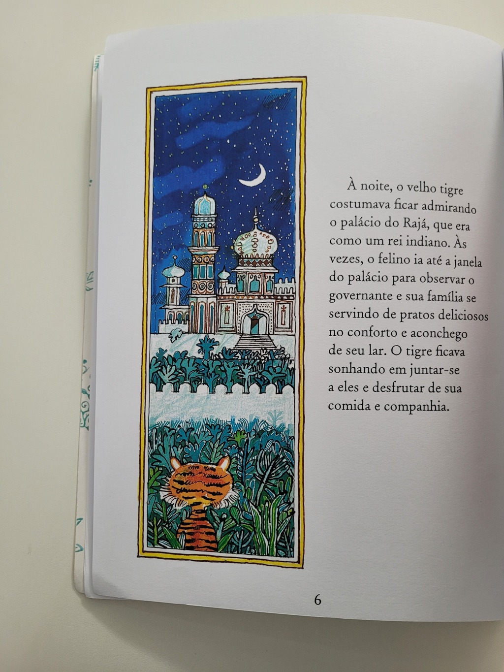 Houve certa vez um tigre muito magro que vivia nas profundezas da selva indiana. Um dia ele viu um dos empregados do Rajá limpando os tapetes nos jardins do palácio. Um deles era justamente uma pele de tigre. Foi então que ele teve uma ideia…