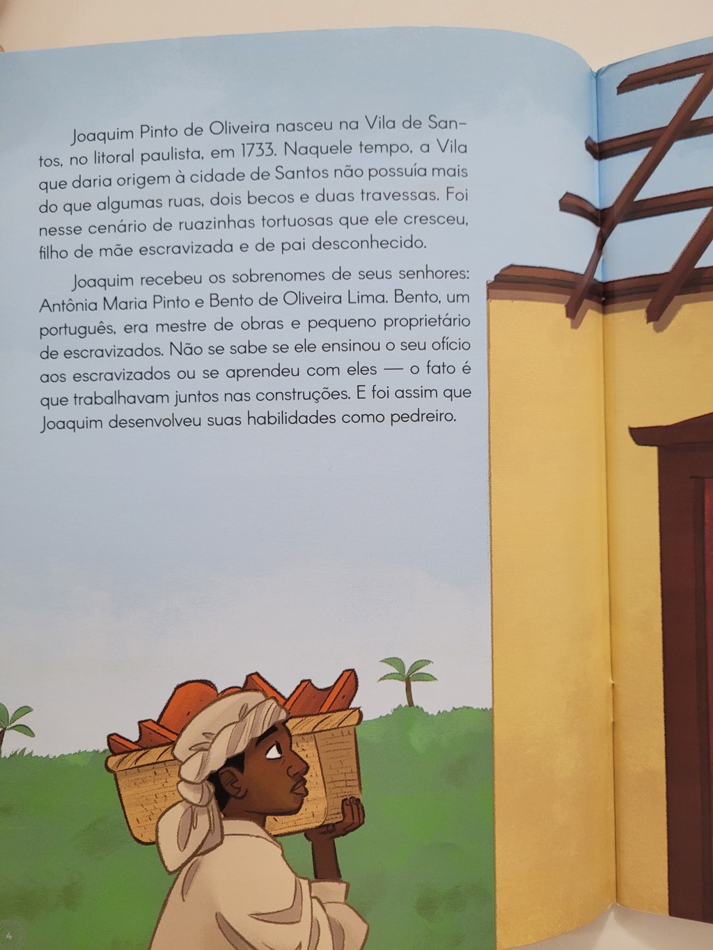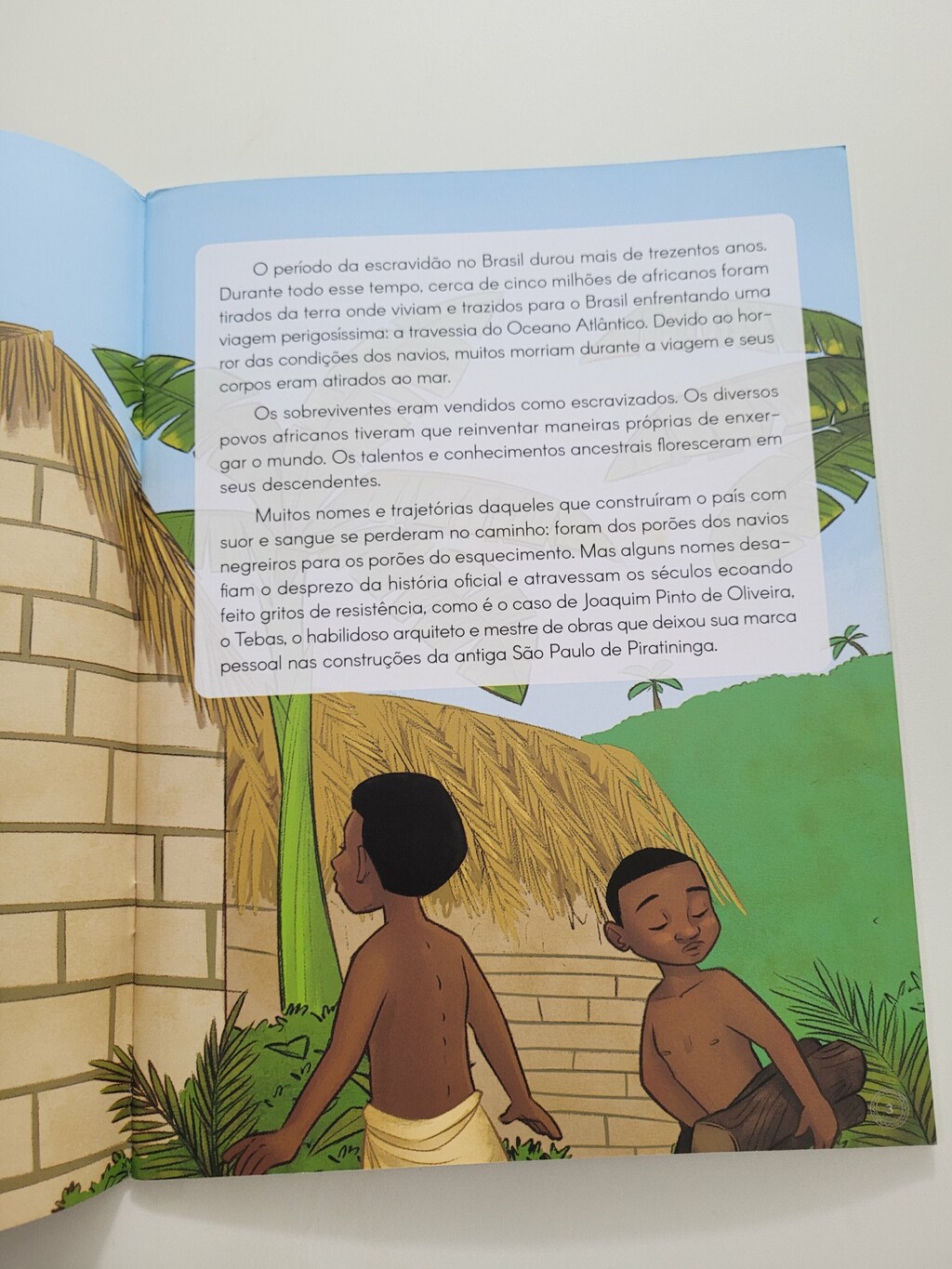 Esta obra conta a história de Joaquim Pinto de Oliveira. O Tebas. Uma das mais emblemáticas figuras da arquitetura no Brasil. Escravizado até os 44 anos, dominava a arte de talhar pedras para construções que o levou a ser muito reconhecido e, inclusive a ser contratado para a realização de projetos de arquitetura. Tebas foi um dos poucos homens escravizados que pode se alfabetizar e conquistar sua alforria. Deixou um enorme legado a arquitetura de São Paulo, em construções como a antiga Catedral da Sé.
