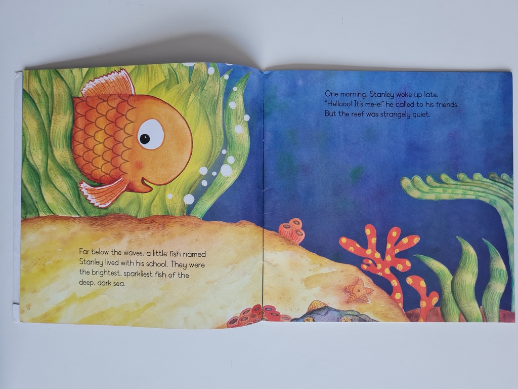 Far below the waves, a little fish named Stanley lives with his school. They are the brightest, sparkliest fish of the sea. One morning, Stanley wakes up late, and the reef is strangely quiet. Oh no! Where have all the other fish gone? Follow Stanley on a surprising adventure as he searches for his glittery, glowing friends!