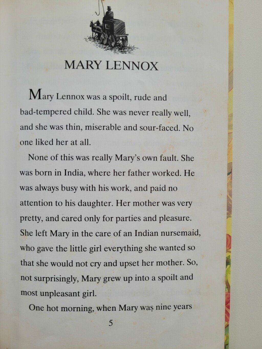 When the orphan Mary Lennox comes to live at Misseltheaite Manor, she finds it filled with gloom and mystery. Her uncle is sad silent, there are strange cries in the night and there are tales of a hidden Secret Garden, which Mary is determined to find and unlock.