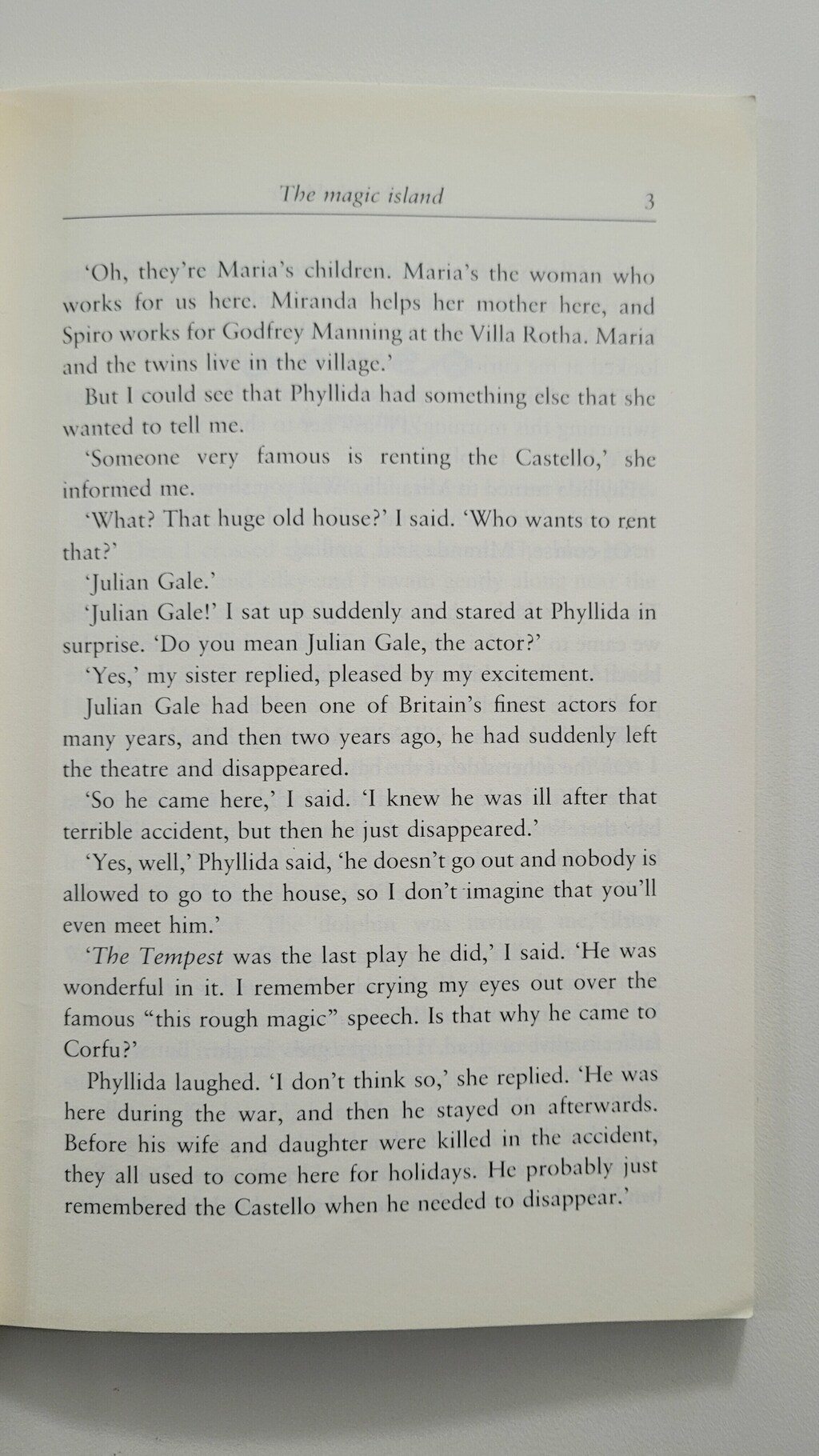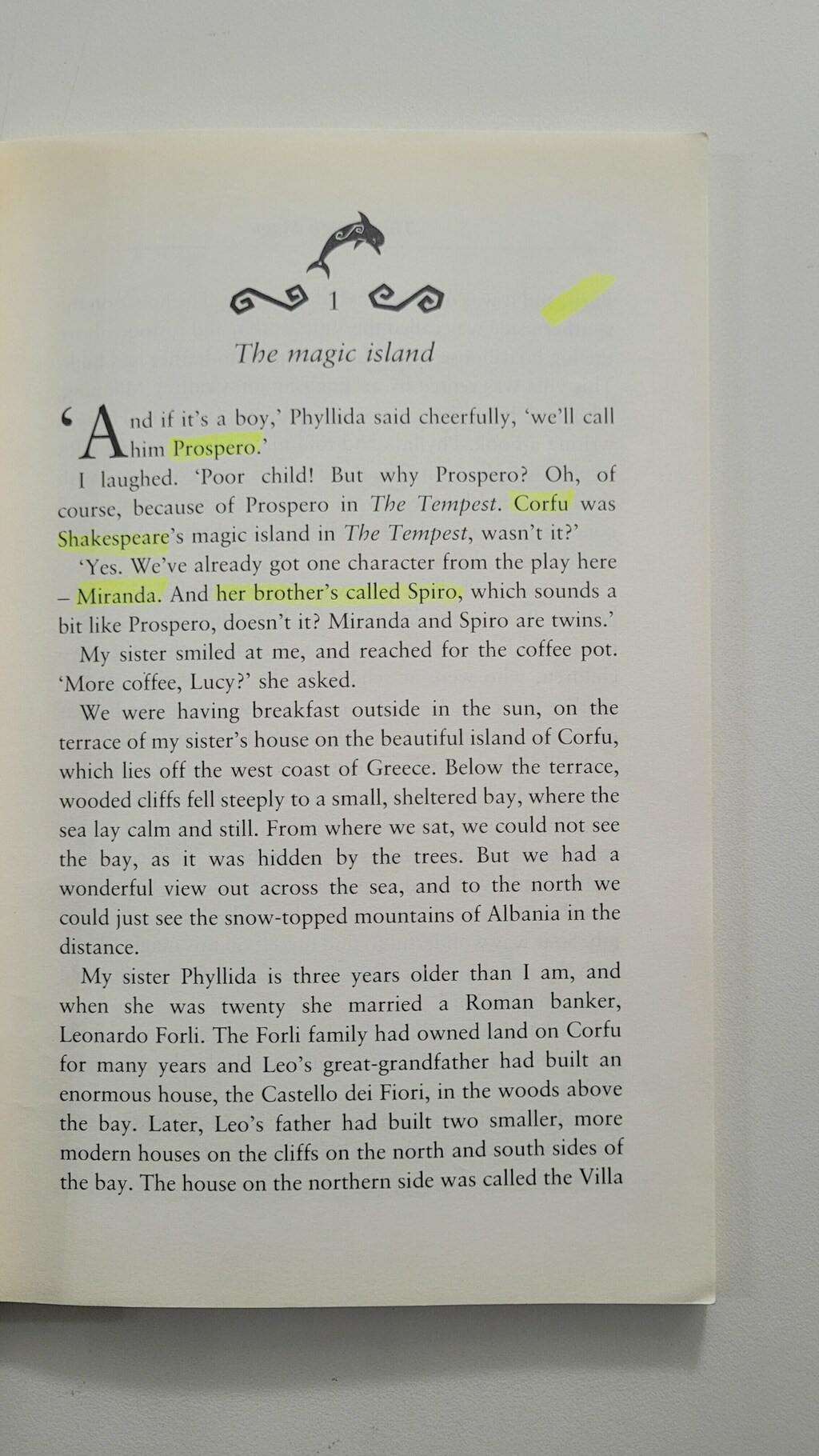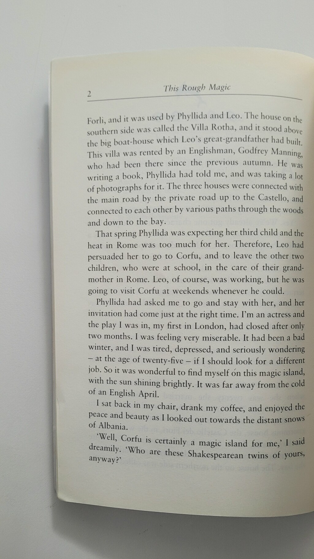 The Greek island of Corfu lies like a jewel, green and gold, in the lonian sea, where dolphins swim in the sparkling blue water. What better place for na out-of-work actress to relax for a few weeks?