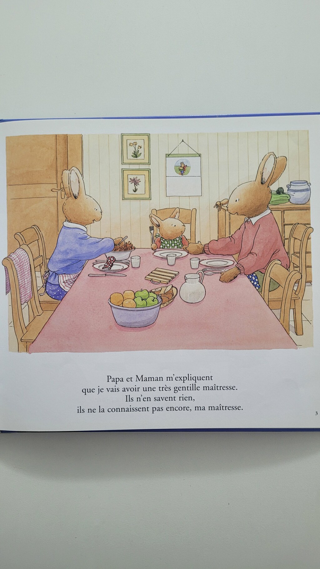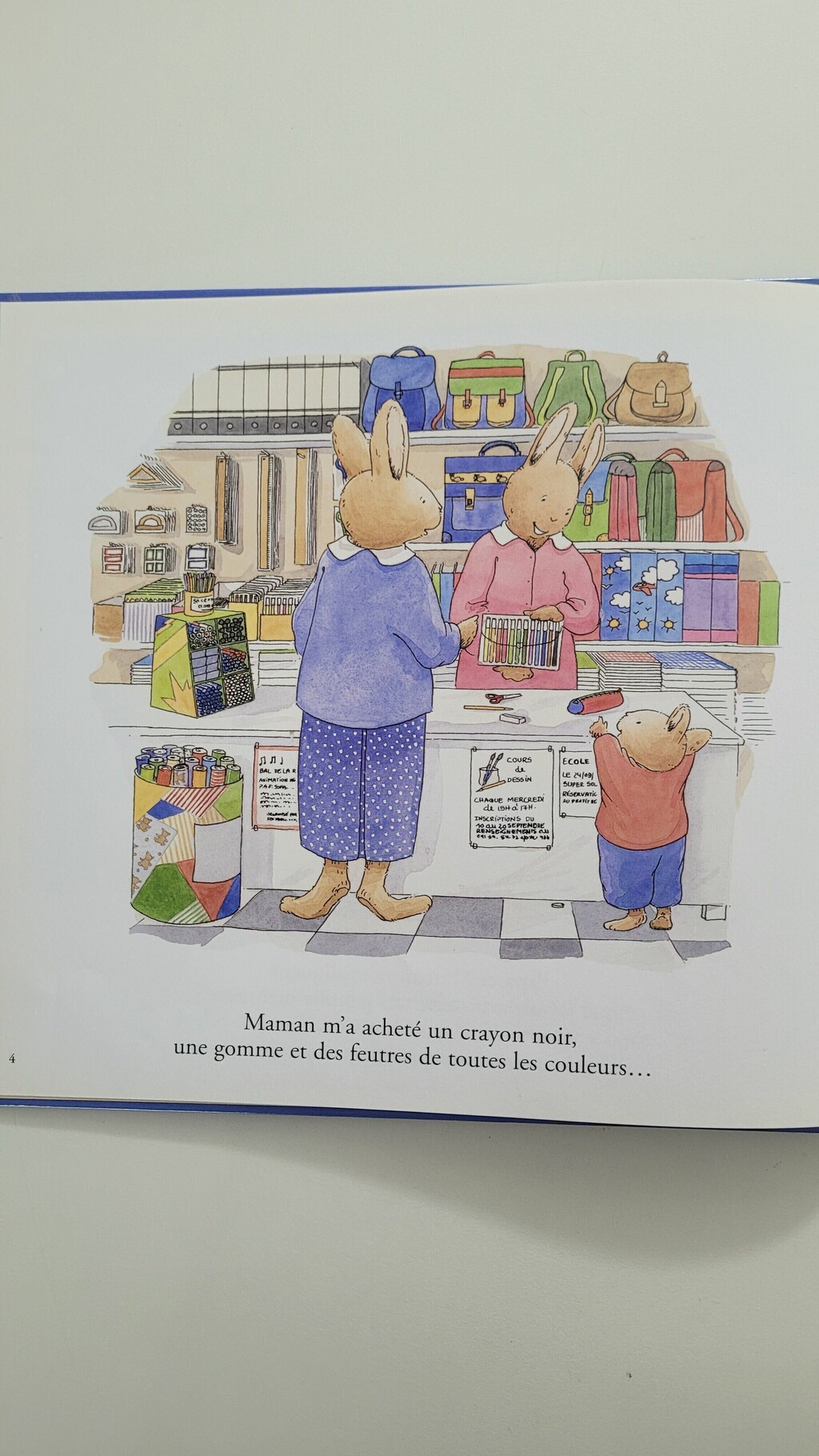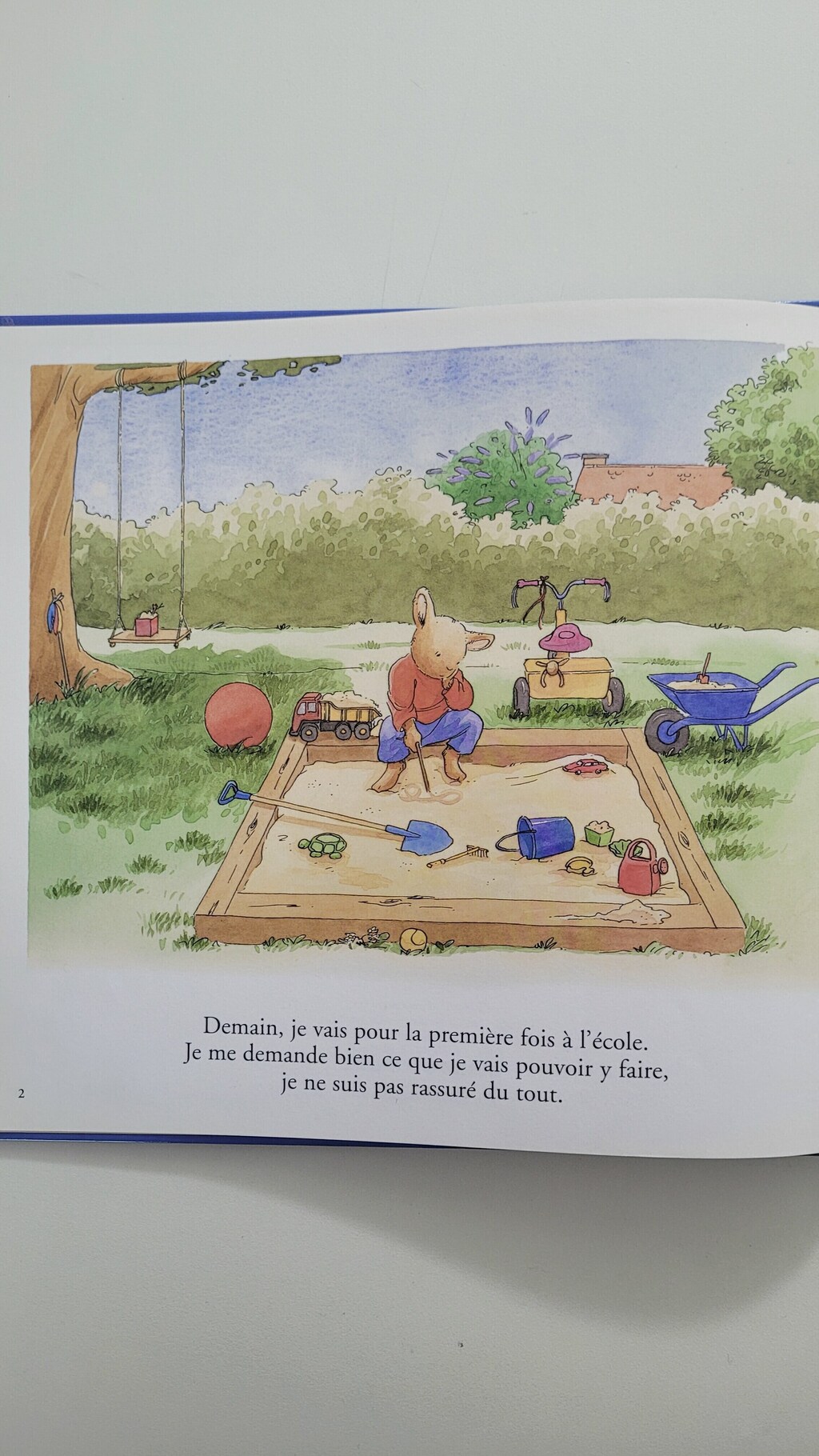 Demain, Tom va á l’école pour la premiére fois. Il n’est pas rassuré du tout. Et même si Papa lui dit que la maîtresse est trés gentille, même s’il a um beau sac á dos tout neuf, même si Maman lui a prêté son mouchoir, c’est vraiment dur, devant l’école, de se retenir de pleurer.