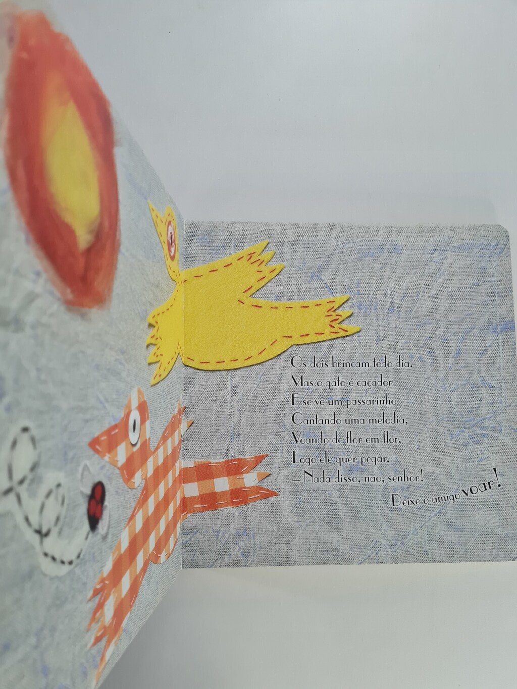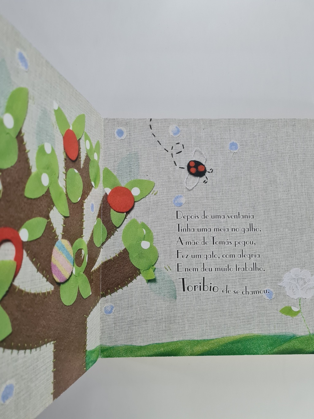 Esta á a história de um gato Que tinha patas de trapo E olhos que alguém fez. Quer que eu conte outra vez? Assim começa a história criada por Gerardo Méndez, ilustrada por Ana Paula Rosales e traduzida por Ana Maria Machado. O menino Tomás e o gato feito por sua mãe são amigos inseparáveis. Brincam todo dia, divertem-se e dormem juntos. Um livro em que as imagens saltam aos olhos pela perfeição das colagens feitas de retalhos de tecidos e digitalizadas. A história resgata a importência do brincar na infância. Mais do que isso, ressalta que o imaginário infantil é tão rico que um simples gato de meia pode levar uma criança ao mundo da fantasia.