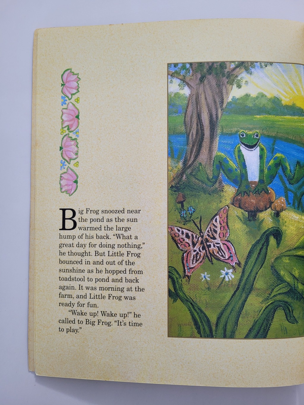 It’s a beautiful morning on the farm, but danger lurks ahead for Big Frog and Little Frog as they frolic their way straight into deep trouble. Can they escape? Fear turns to courage in this delightful new telling of na old fable.