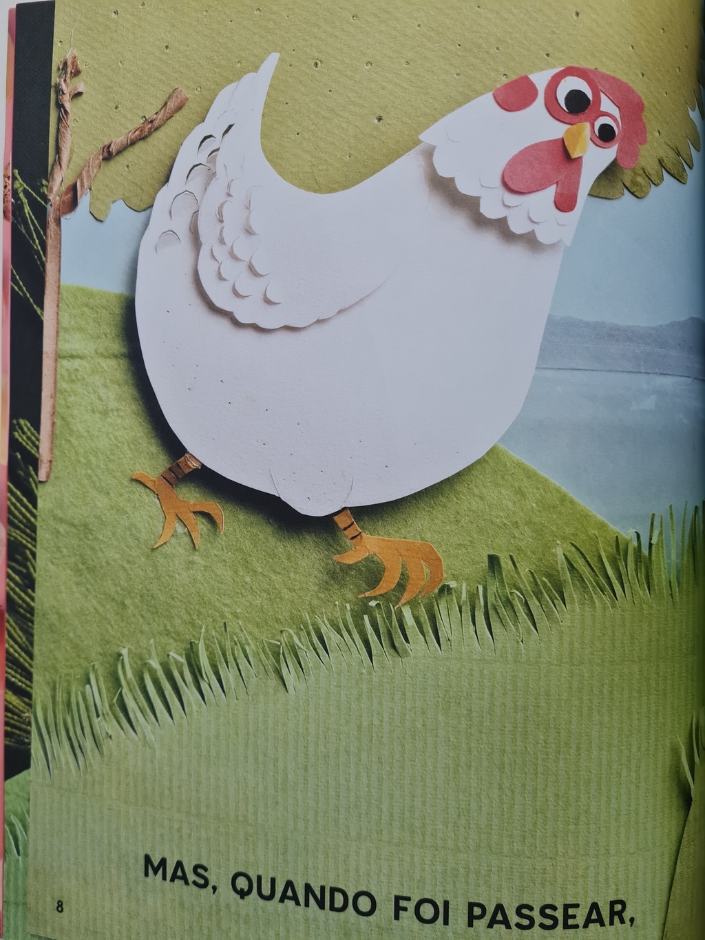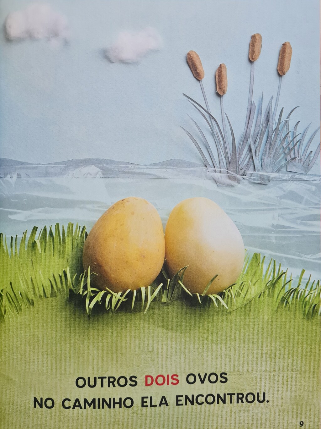 Dona galinha, que boazinha, não gostava de deixar ovinhos abandonados. E ia levando todos para o seu ninho. Um ovo, mais dois ovos, e mais dois… E mais tres… Dona Galinha, que boazinha, vai chocar todos os ovinhos. Xiiii! Será que a Dona galinha não está se esquecendo de nada?
