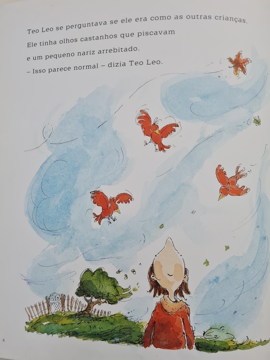 Teo Leo é exatamente como os outros garotos: ele gosta de pular, gosta de brincar na lama, gosta de comer minhocas… Comer Minhocas??? Sim, ele é o garoto com somente uma meia azul, e ele vai todos os dias para a escola pulando num pé só. Ele seria completamente feliz se não fossem seus dois longos e felpudos braços vermelhos, que sempre o atrapalhavam… Até que um dia, ele decidiu batê-los e descobriu que… podia voar!