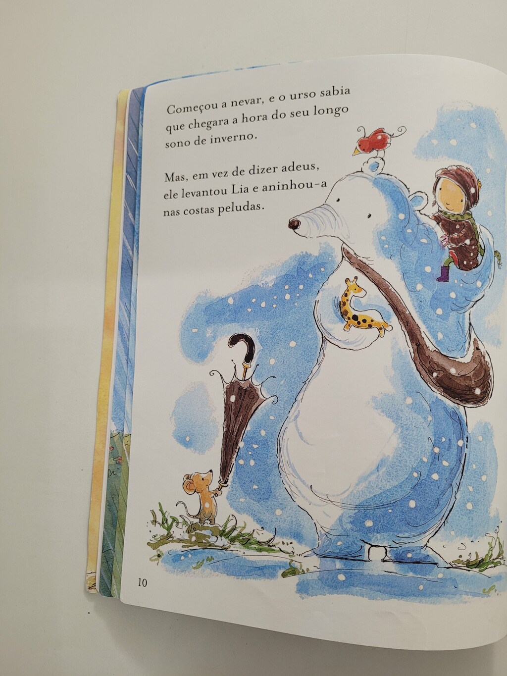 Chegou o inverno, e o urso sabe que está na hora do seu longo sono. Enquanto se prepara para hibernar, ele encontra Lia triste, porque sua árvore favorita havia perdido as folhas. Em vez de dizer adeus e ir dormir, o urso levanta Lia e a coloca em suas costas peludas, tão quentes quanto uma lembrança de verão. Ambos seguem juntos para maravilharem-se com as últimas folhas coloridas, apreciam a neve que cai, flutuando e rodopiando, o Sol, a Lua e as estrelas. Na manhã seguinte, o urso está cansado – e Lia sabe que ele deve dormir, mas não sem antes realizar uma última e importante tarefa. Stephen Michael King mais uma vez surpreende pelos traços aparentemente simples, mas que têm muito a dizer. O urso e a árvore apresenta uma linda paisagem de inverno que só poderia ter saído da imaginação deste admirado e premiado autor.