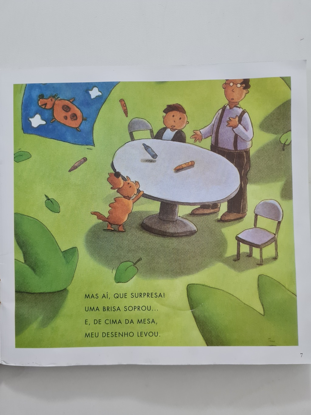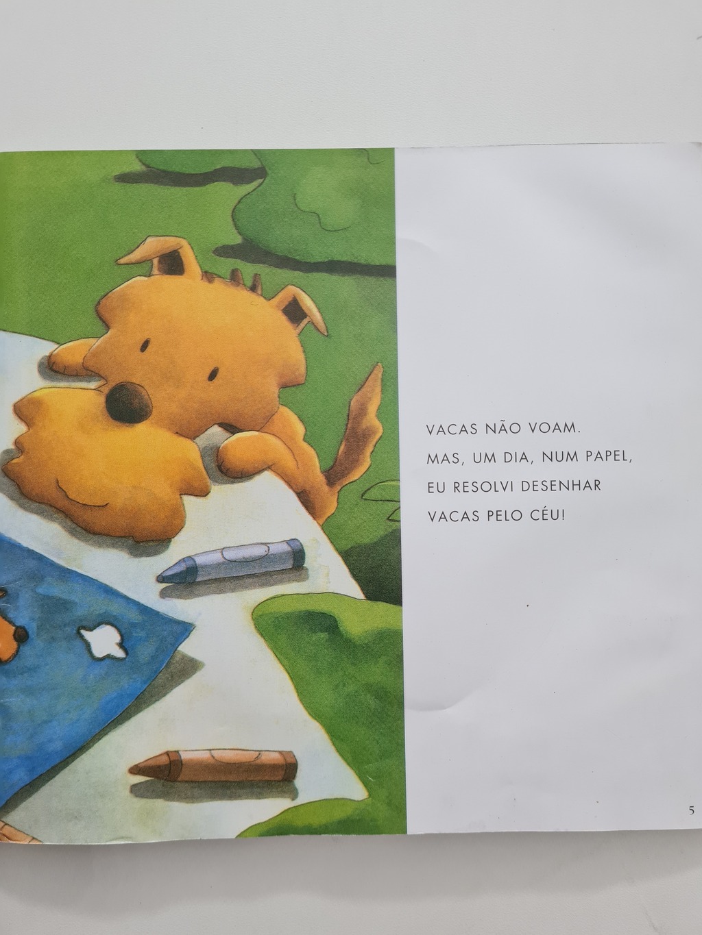 Vacas não voam. Mas quando a gente desenha ou conta uma história, acontece de tudo. Foi assim, então: Era uma vez o desenho de um menino. Um desenho tão bonito e tão querido… Que fez as vacas voarem.