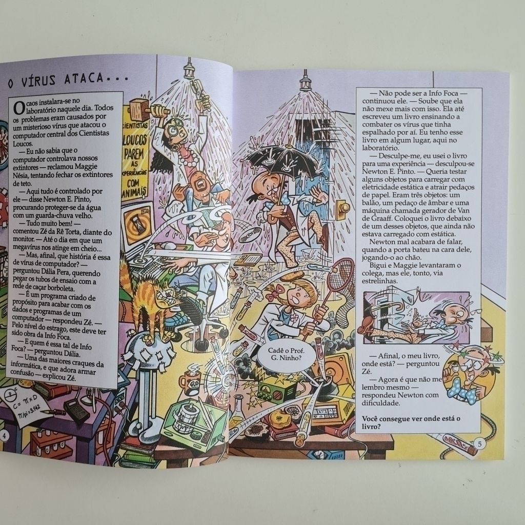 O professor G. Ninho e sua equipe fazem tudo para que a ciência sirva sempre às boas causas e lutam contra supercérebros que querem usá-la para o mal. No entanto eles precisam da ajuda do leitor para realizar esta tarefa por meio da solução de problemas e quebra-cabeças. O barão Saul Dozso da K. Roça odeia profundamente tudo o que é moderno sobretudo as recentes conquistas no campo da ciência e da tecnologia como por exemplo os computadores. Esse ódio ao progresso fez do Barão um perigoso inimigo da humanidade. Escondido numa sala secreta do castelo ele aperfeiçoa uma máquina para criar O Vírus Desinformático com o qual pretende contaminar e decretar o fim de todos os computadores do mundo. Felizmente existem os Cientistas Loucos liderados pelo mais genial de todos o professor G. Ninho.
