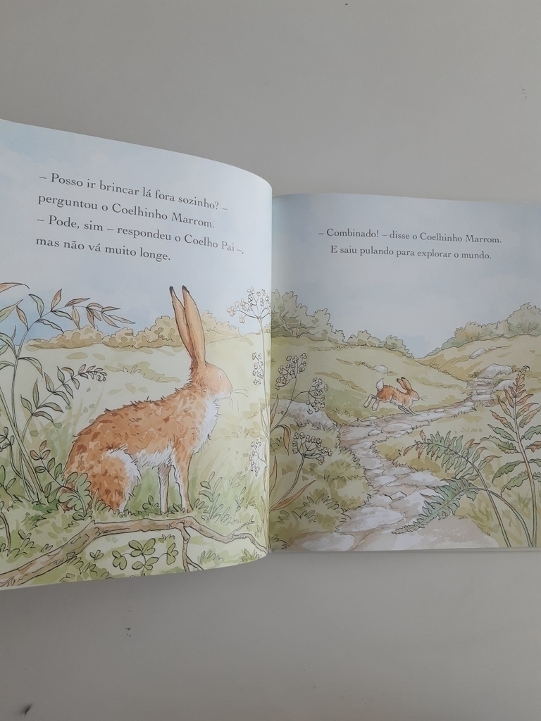 O Coelhinho Marrom logo chegou à Montanha Nublada. E olha só a surpresa que o aguardava na relva!
