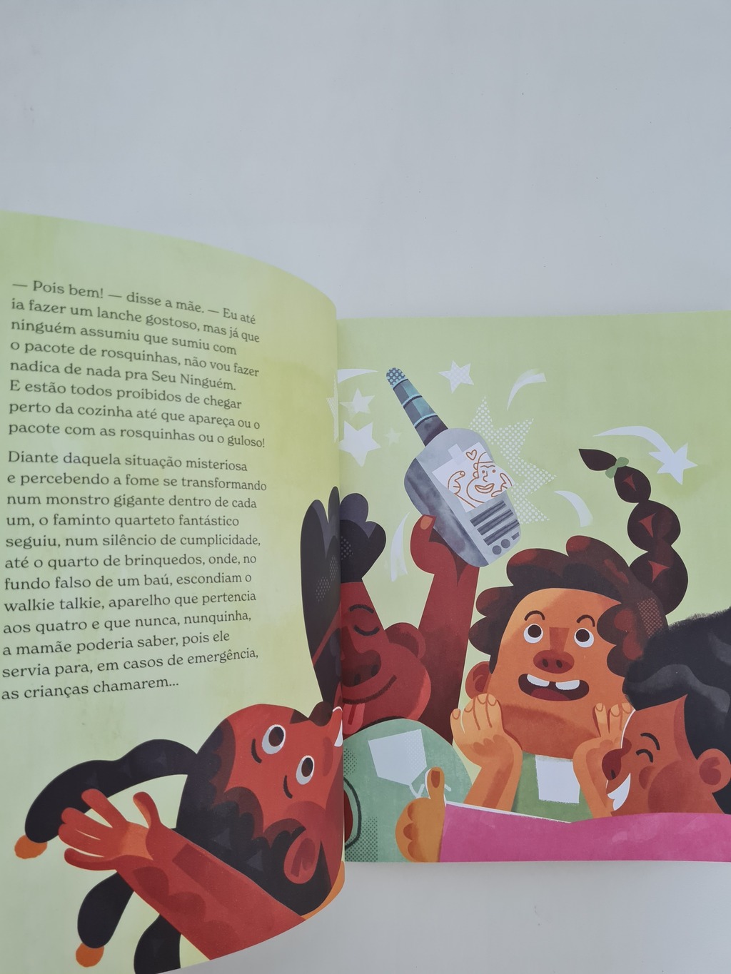 Poucas coisas na vida são mais especiais do que a cumplicidade em família, e os quatro irmãos desta história sabem disso. Será que eles conseguirão sair de uma travessura sem precedentes? Tudo vai depender do super-herói VovôLidô e seu ajudante peludo. Capturando a energia da família, Vienno dá o tom quente, marcante e acolhedor à narrativa, enquanto Tino Freitas nos conduz neste divertido mistério cheio de farelos e afetos.